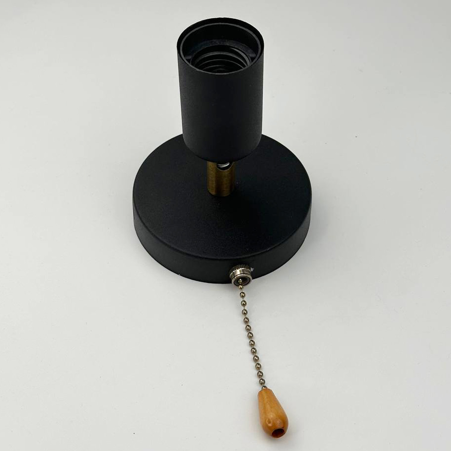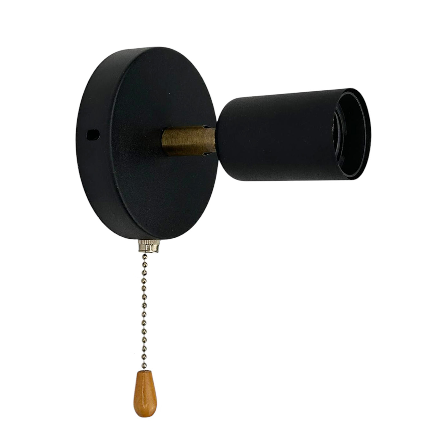 Тип: Бра Тип цоколя: Е27 Тип кріплення: планка Корпус: метал Колір: чорний Наявність поворотного механізму й вимикач із дерев'яним наконечником. Діаметр кришки кріплення: 100 мм Діаметр плафона: 42 мм Висота плафона: 60 мм