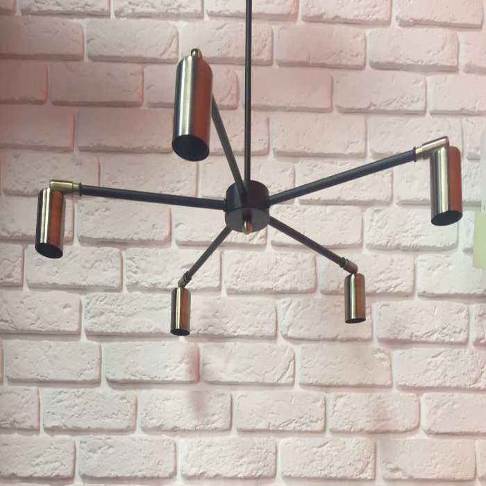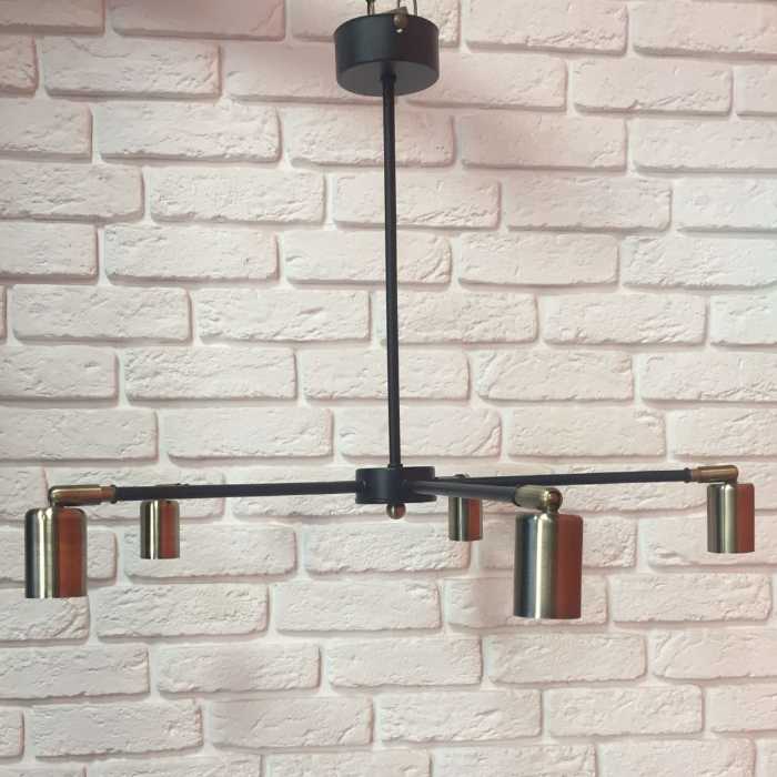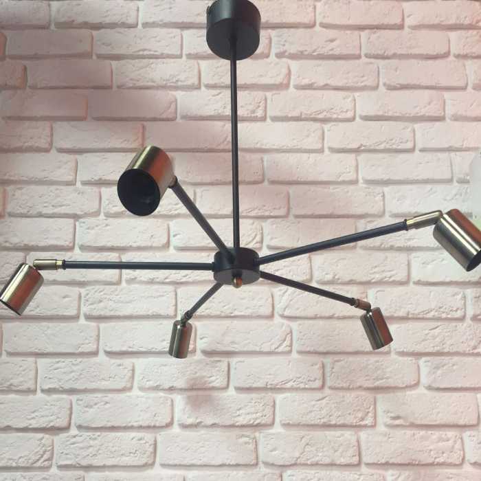 Люстра у стилі вінтаж із бронзовими патронами, легко впишеться у ваш інтер'єр в індустріальному стилі! У люстрі є шарніри, що дозволяє патрони розгортати в різні боки та спрямовувати світло у потрібне русло. Патрони можна зробити іншого кольору (золото, хром та ін.) Тип цоколя: E27; Кількість джерел світла: 5 (можна зробити різну кількість промінців) уточнюйте у менеджера. Розетка стелі d88 Висота (мм): 380; Діаметр (мм): 580. Максимальна потужність лампи (Вт): 60 W.