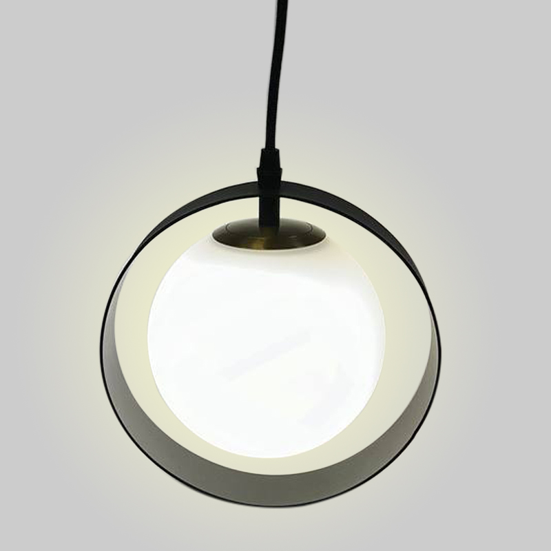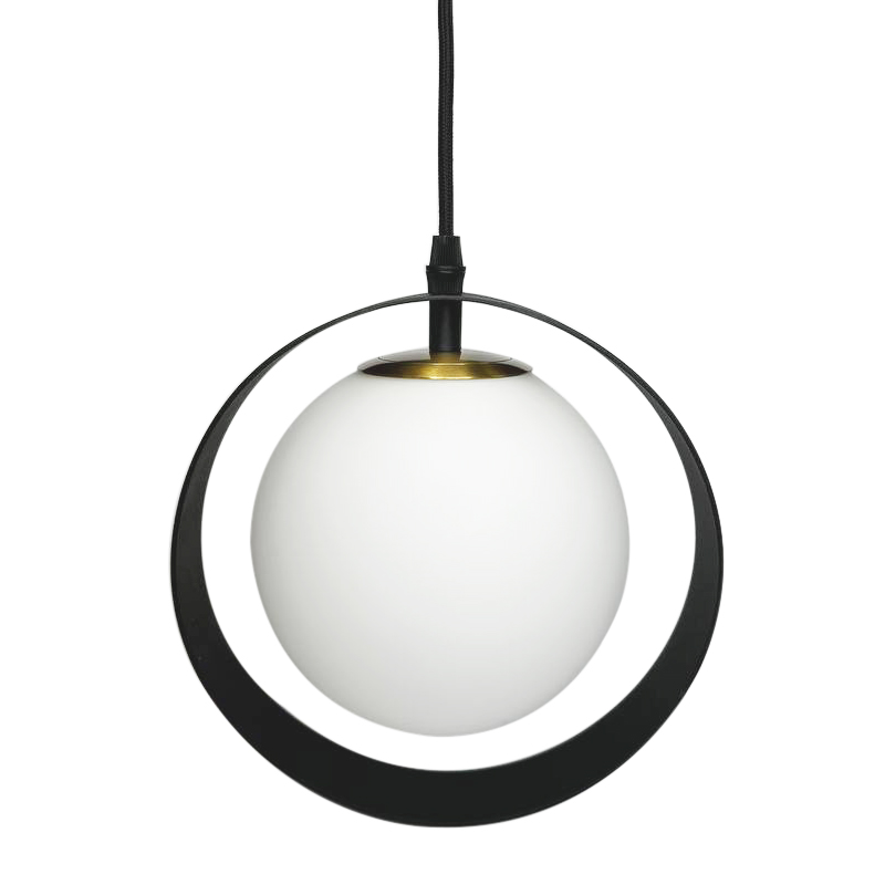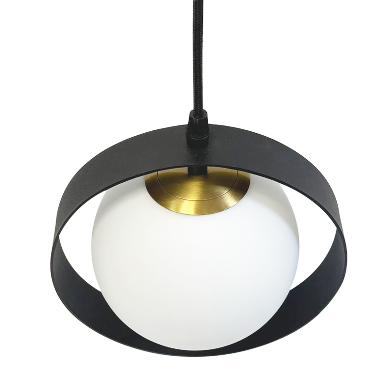 Підвісний світильник з плафоном у вигляді шару і металевим абажуром