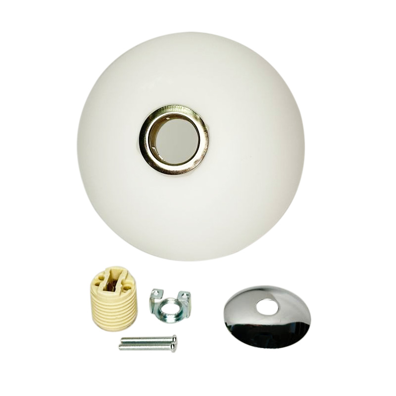 Плафон скляна куля біла матова D110 під лампу G9 з накладкою в кольорі хром Економ