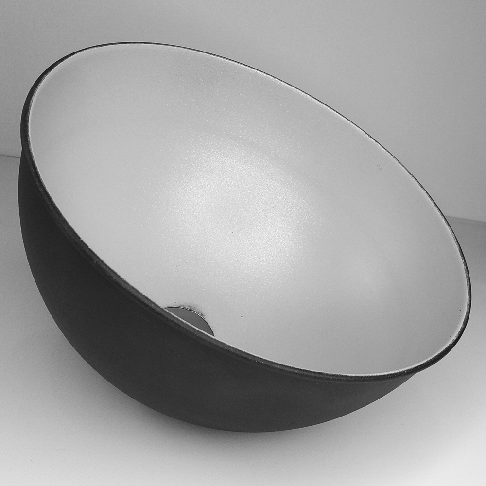 Сталевий абажур (плафон) для виготовлення підвісних світильників. Забарвлений у два кольори – чорний зовні та у сірий перламутр – усередині. Передбачає можливість комплектації патронами різного типу (у комплект не входять).