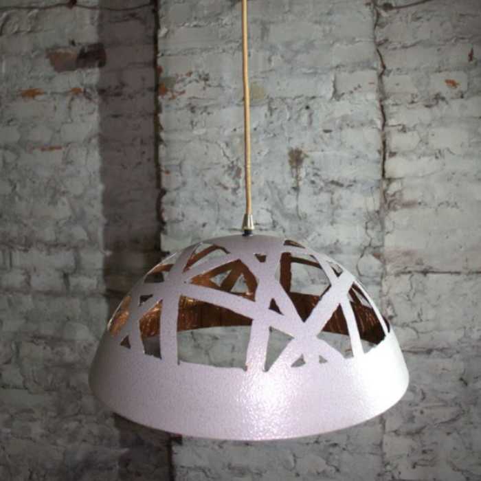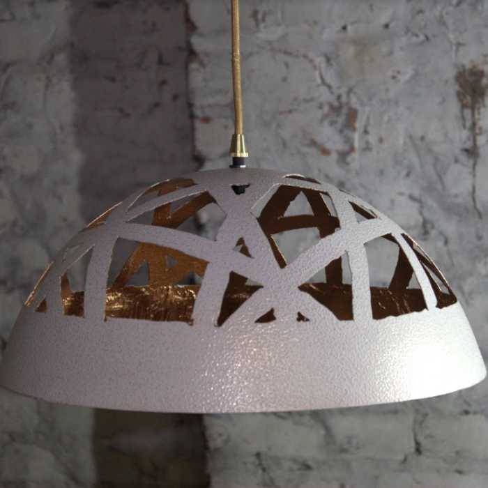 діаметр 38см, висота +-15/18 см, білий із золотом антик зовні,прорізи у вигляді траєкторій, мідь по рельєфній пасті усередині,