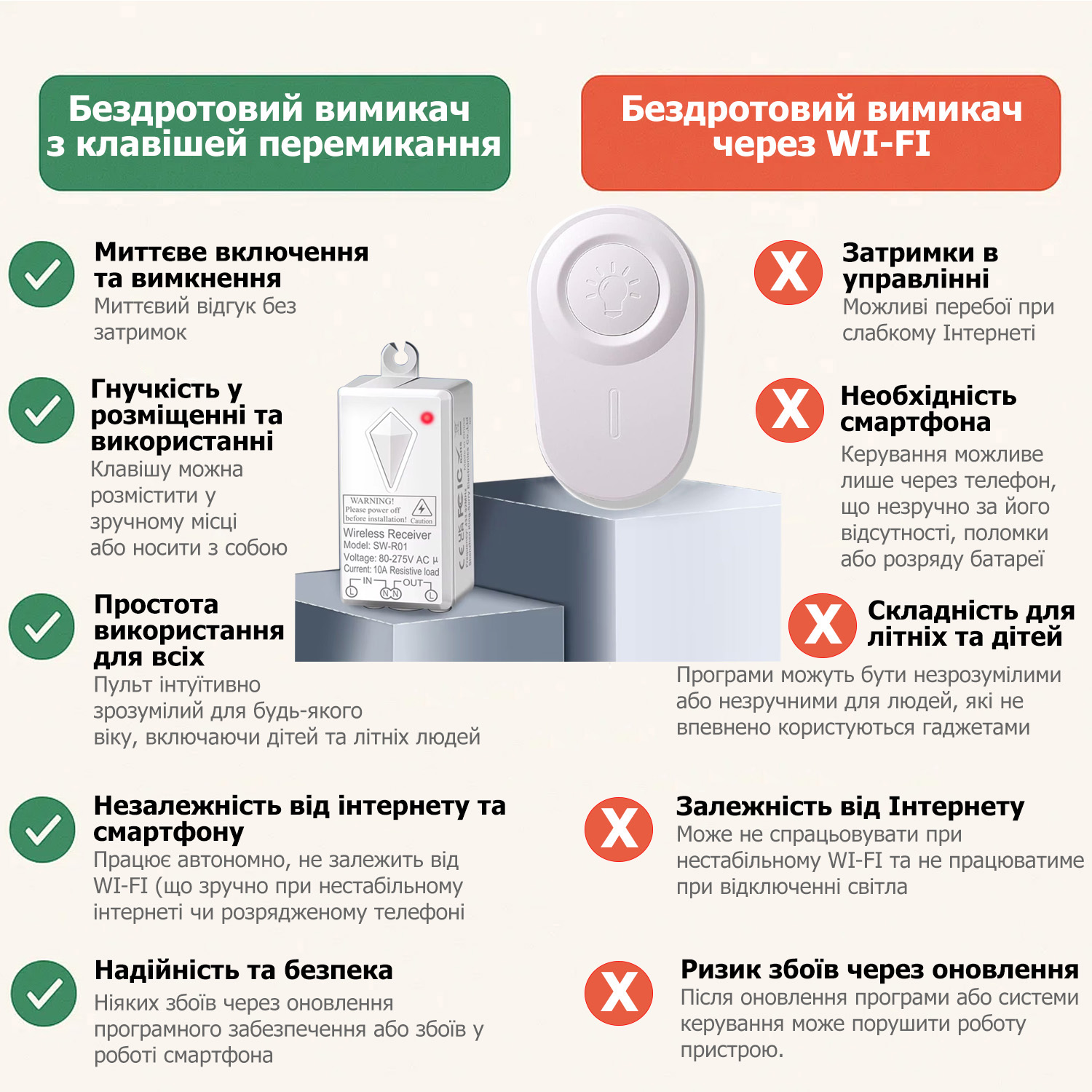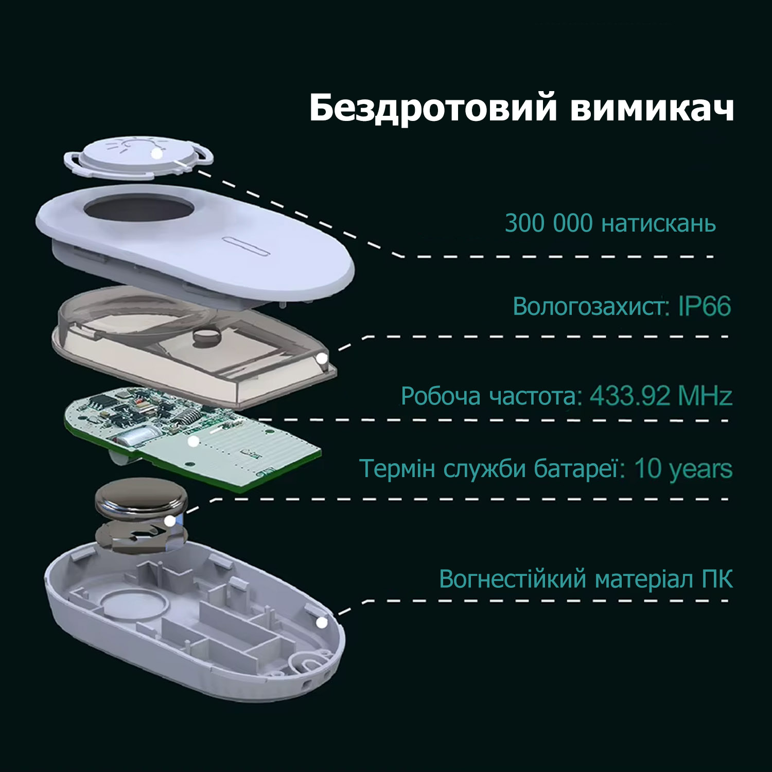 Длительный срок службы батареи: этот беспроводной переключатель может похвастаться замечательным сроком службы батареи — 6–8 лет, что обеспечивает бесперебойную работу и сводит к минимуму необходимость частой замены.