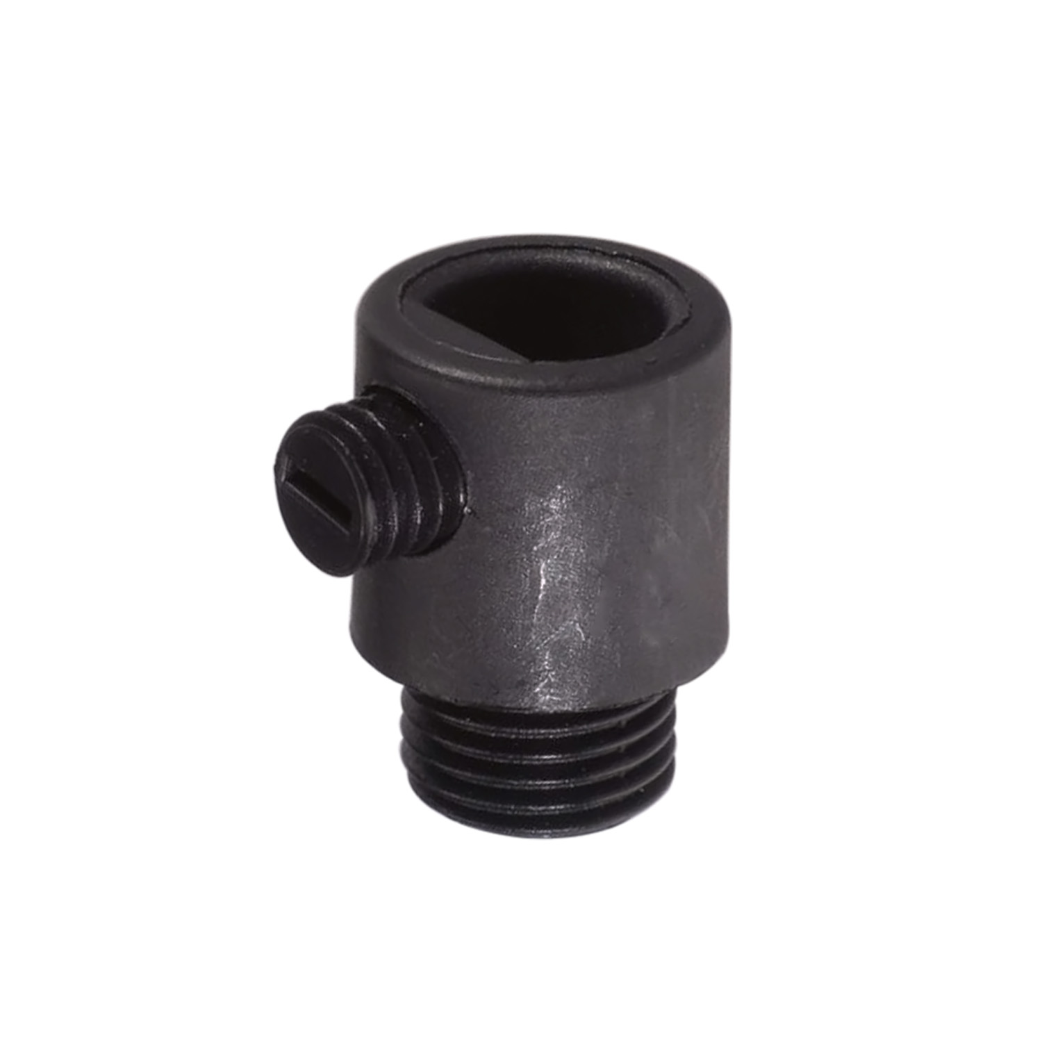 Втулка фіксатор проводу з бічним затиском та зовнішнім різьбленням чорна
