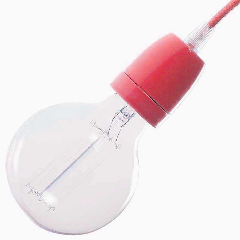 Патрон керамічний Е27 коралового кольору із втулкою фіксатором дроту