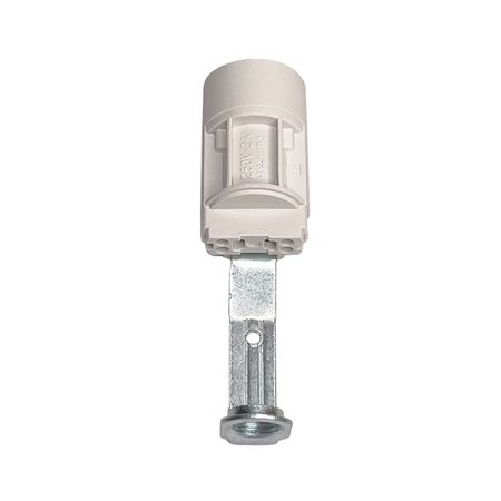 Патрон пластмассовый Е14 люстровый (белый) предназначен для установки ламп накаливания и использования его в бытовом и промышленном применении. Патрон с прижимным кольцом применяется в люстрах, бра, светильниках. Ударопрочный пластмассовый корпус патрона имеет внешнюю резьбу и снабжен прижимным кольцом служащиим для фиксации плафона люстры. Центральный контакт установлен под углом к основанию патрона. Клеммные зажимы позволяют соединять провода с сечением 0,75 - 2,5 мм2.  Номинальное напряжение сети 220-230 В, номинальный ток - 4.0 А.
