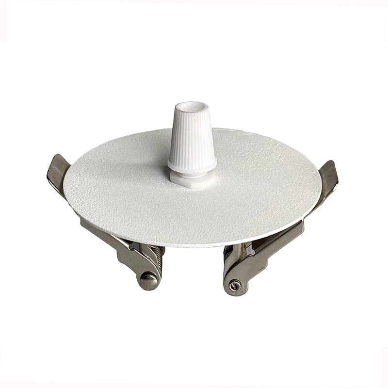 Розетка стельова врізна діаметром 80 мм зі стельовим кріпленням та фіксатором дроту. Виглядає мінімалістично та стильно.