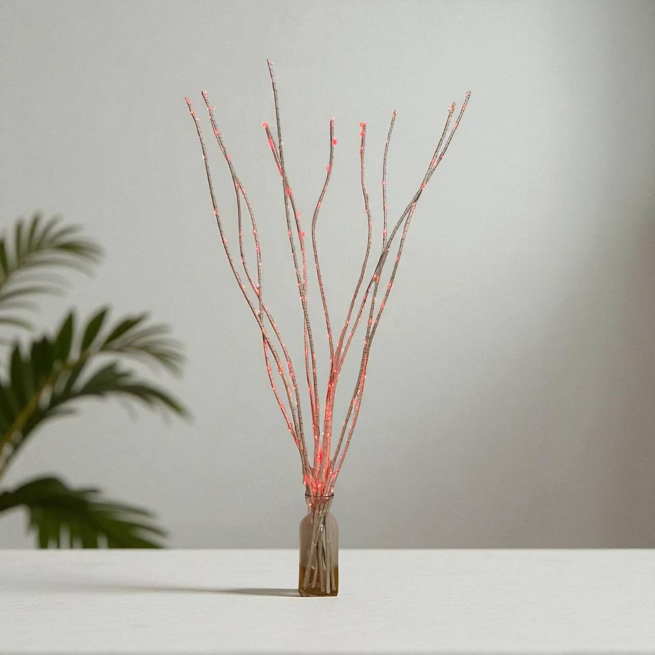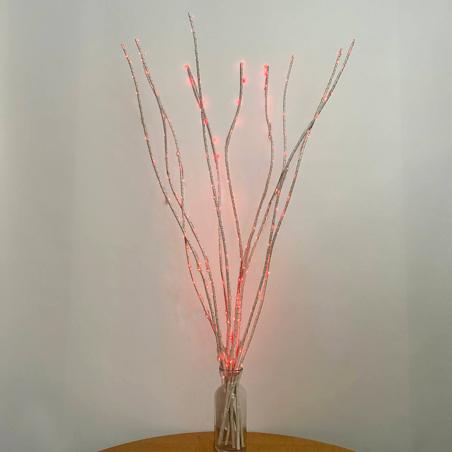 Декоративная композиція у вигляді лози, прикрашеної світлодіодною гірляндою (кінський хвіст 200LED, 10 ниток, по 2 м, колір червоний, працює від батарейок).