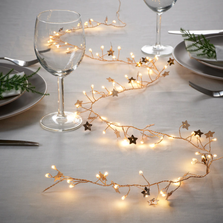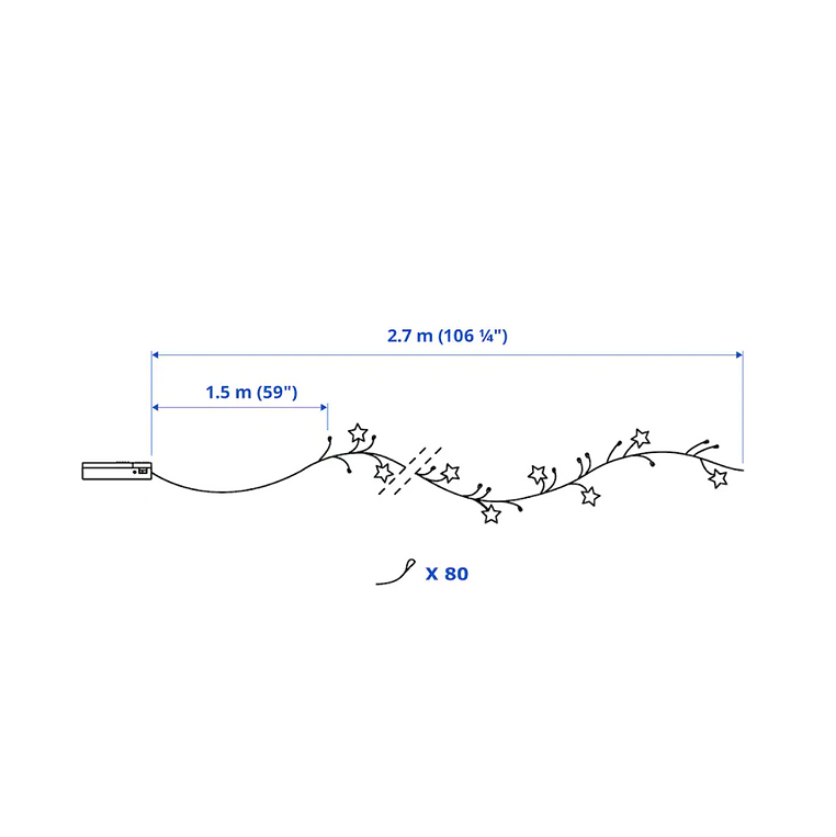 IKEA STRÅLA світлодіодна гірлянда з 80 лампочок зірка/золото на батарейках (оригінал) в подарунковій коробці