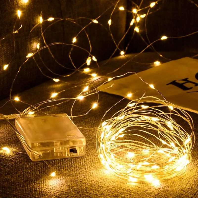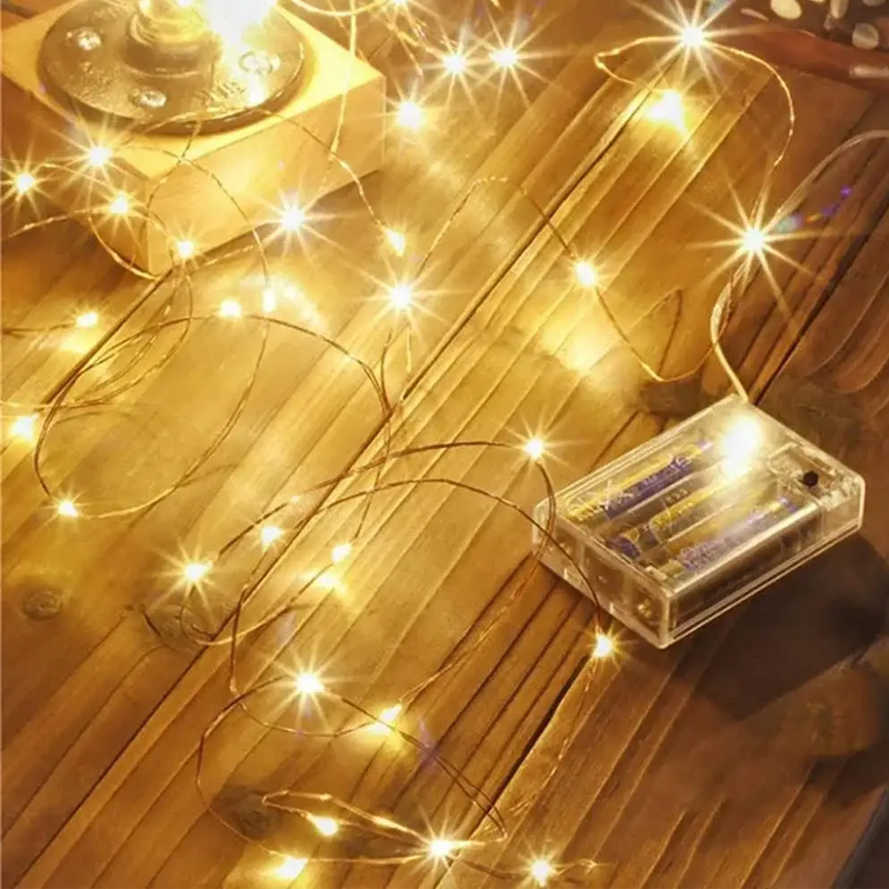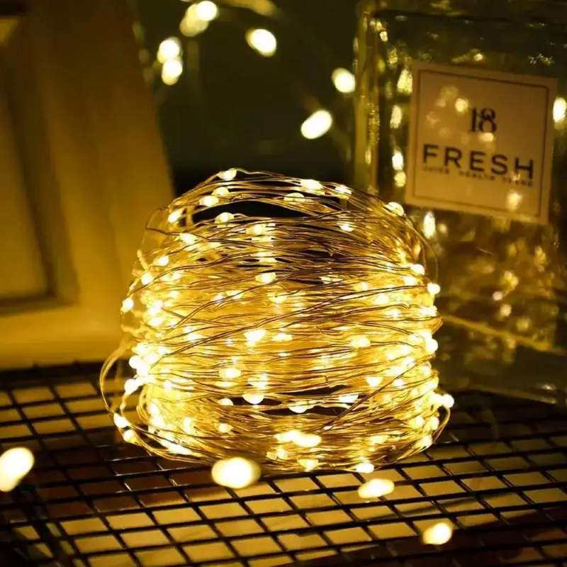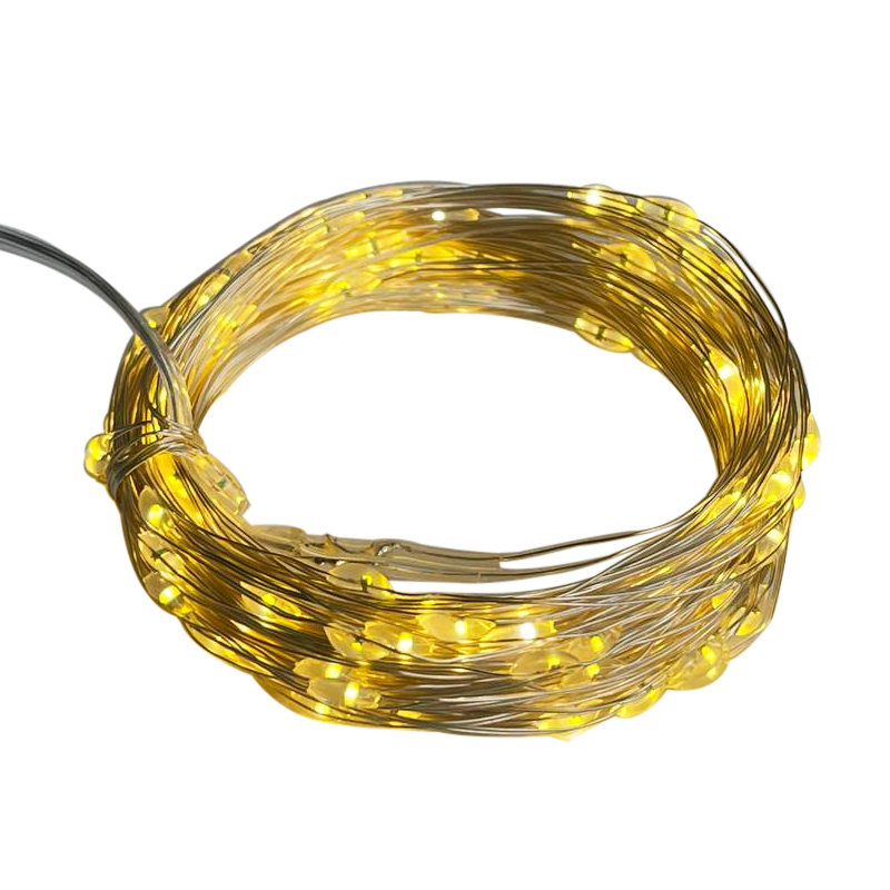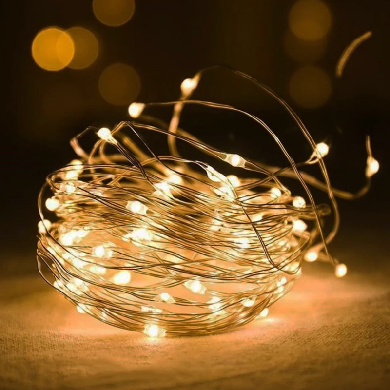 LED гірлянда новорічна 100LED 10м колір Теплий Білий режими статика і мерехтіння від батарейок