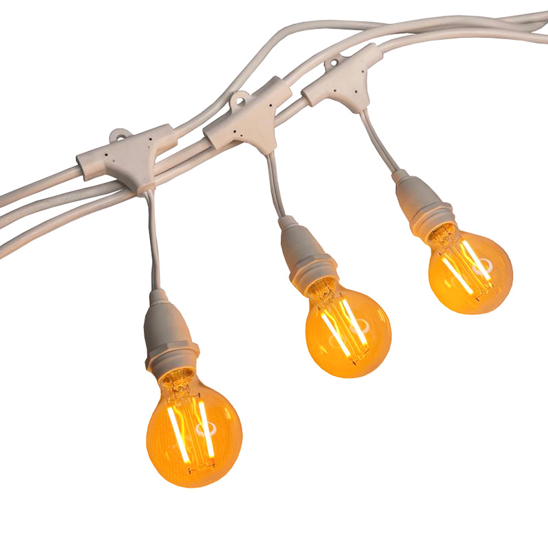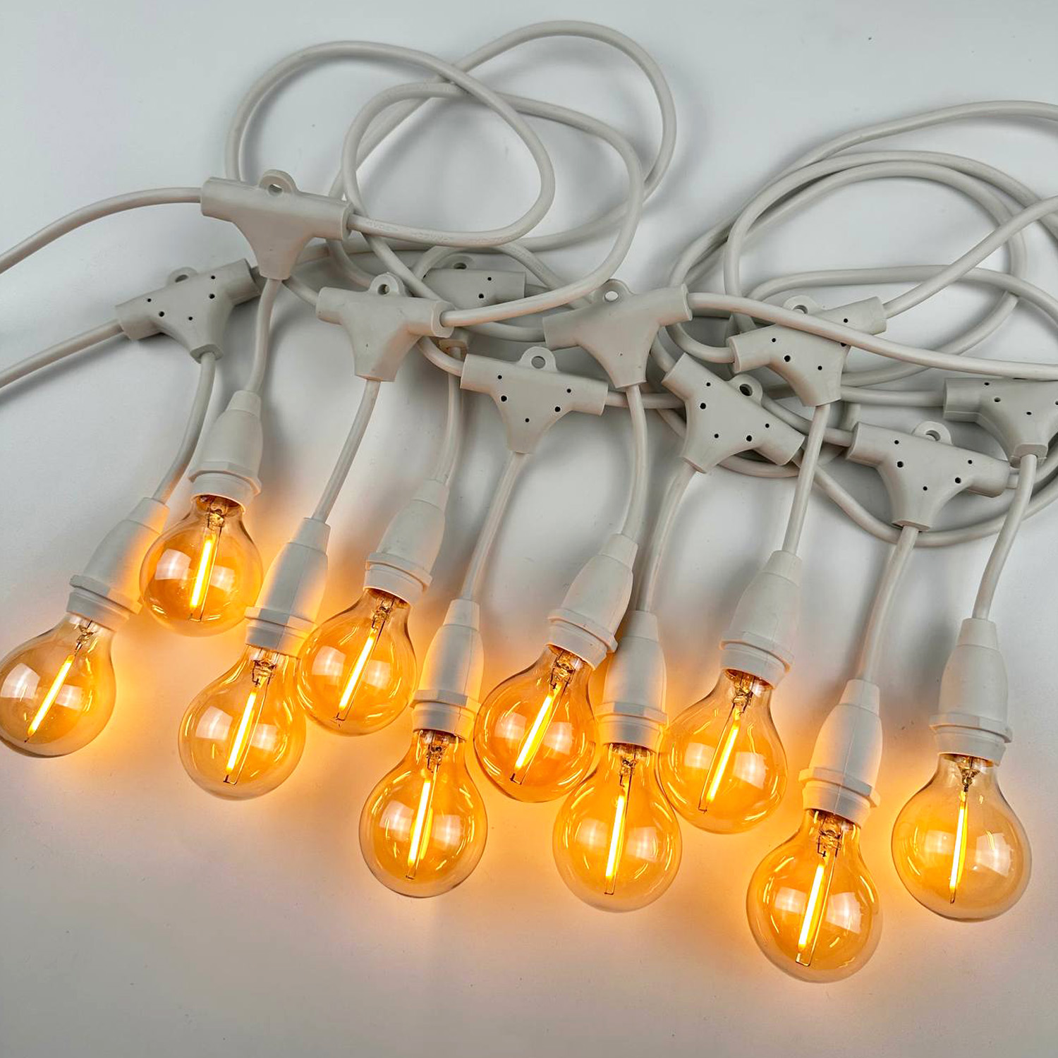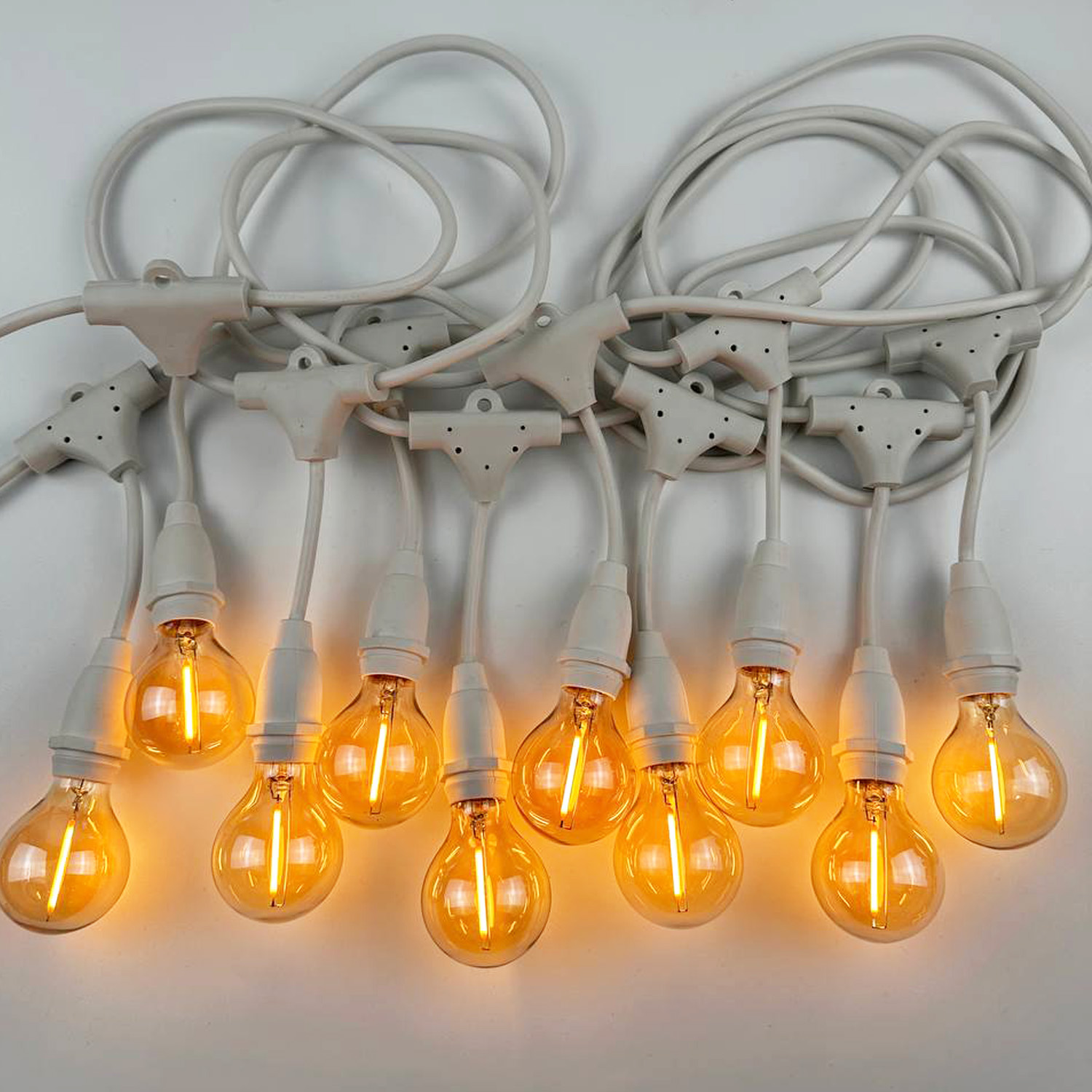 Ретро вулична гірлянда з лампочок під цоколь Е14 PREMIUM (10 м+0,5 м кабель живлення, що купується окремо) IP65 вологозахищена. Дуже красива та стильна гірлянда, при використанні світлодіодних лампочок виглядає набагато ефектніше, ніж стандартні світлодіодні гірлянди.