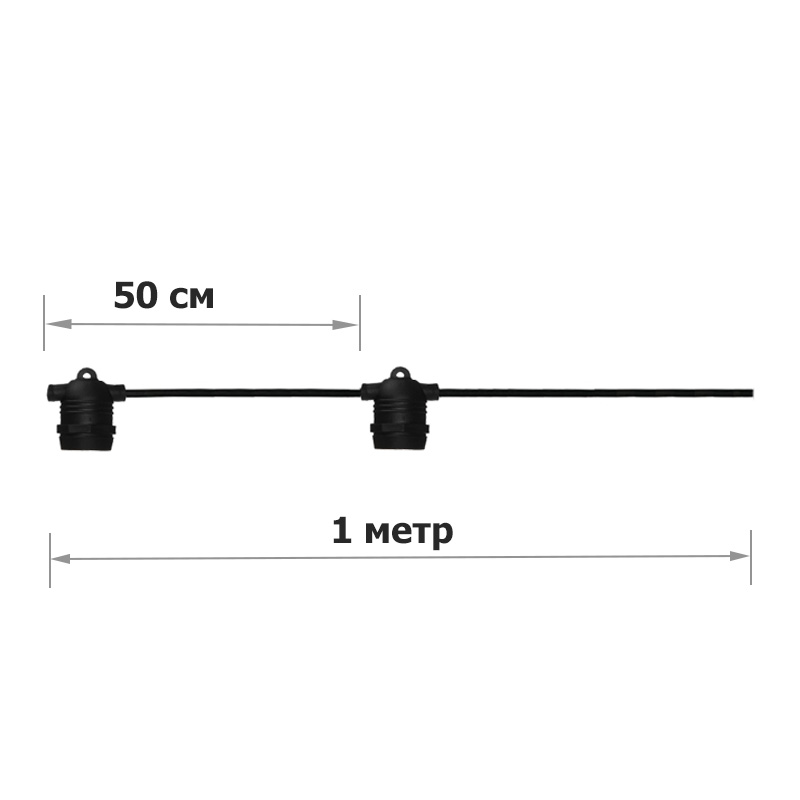 Уличная ретро гирлянда из лампочек под цоколь Е27 PREMIUM IP65 влагозащищенная (шаг 50 см, 2 патрона Е27 на 1 метр).