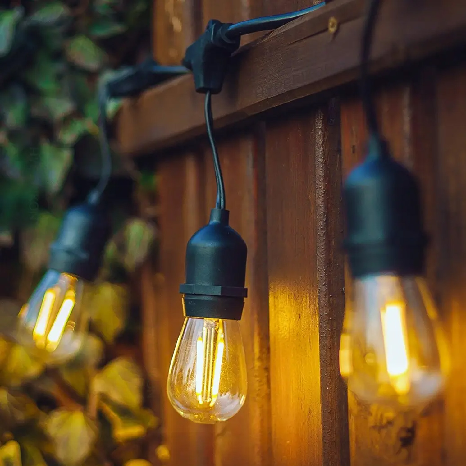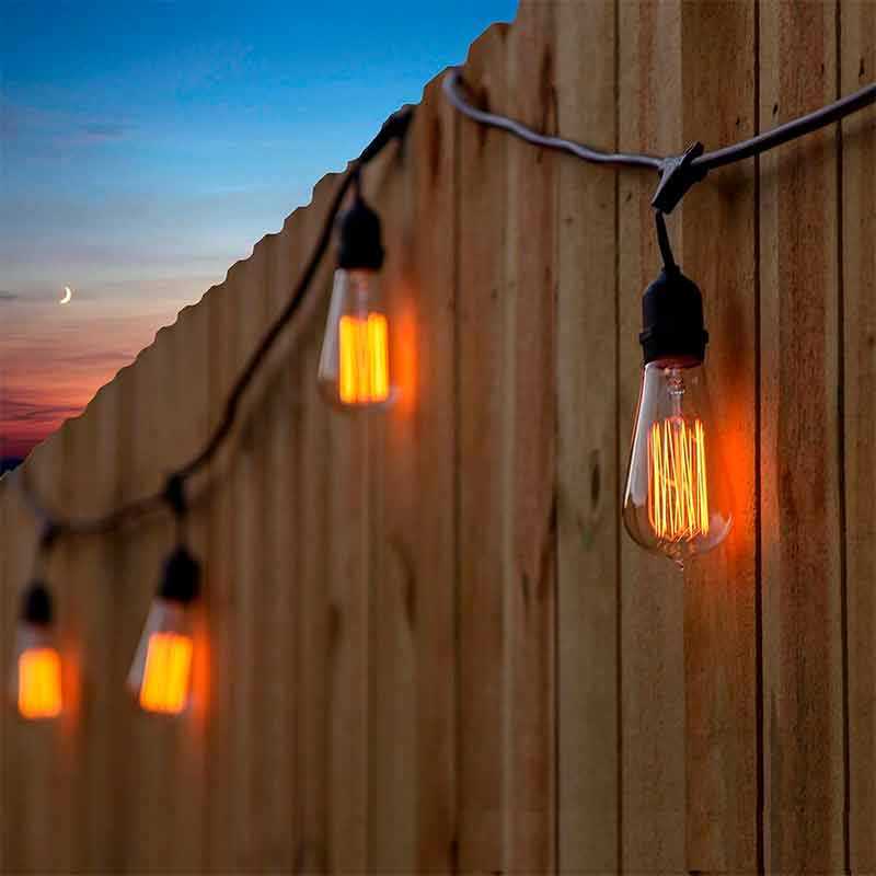 Вулична ретро гірлянда з лампочок під цоколь Е27 PREMIUM IP65 вологозахищена (крок 50 см, 2 патрона Е27 на 1 метр).