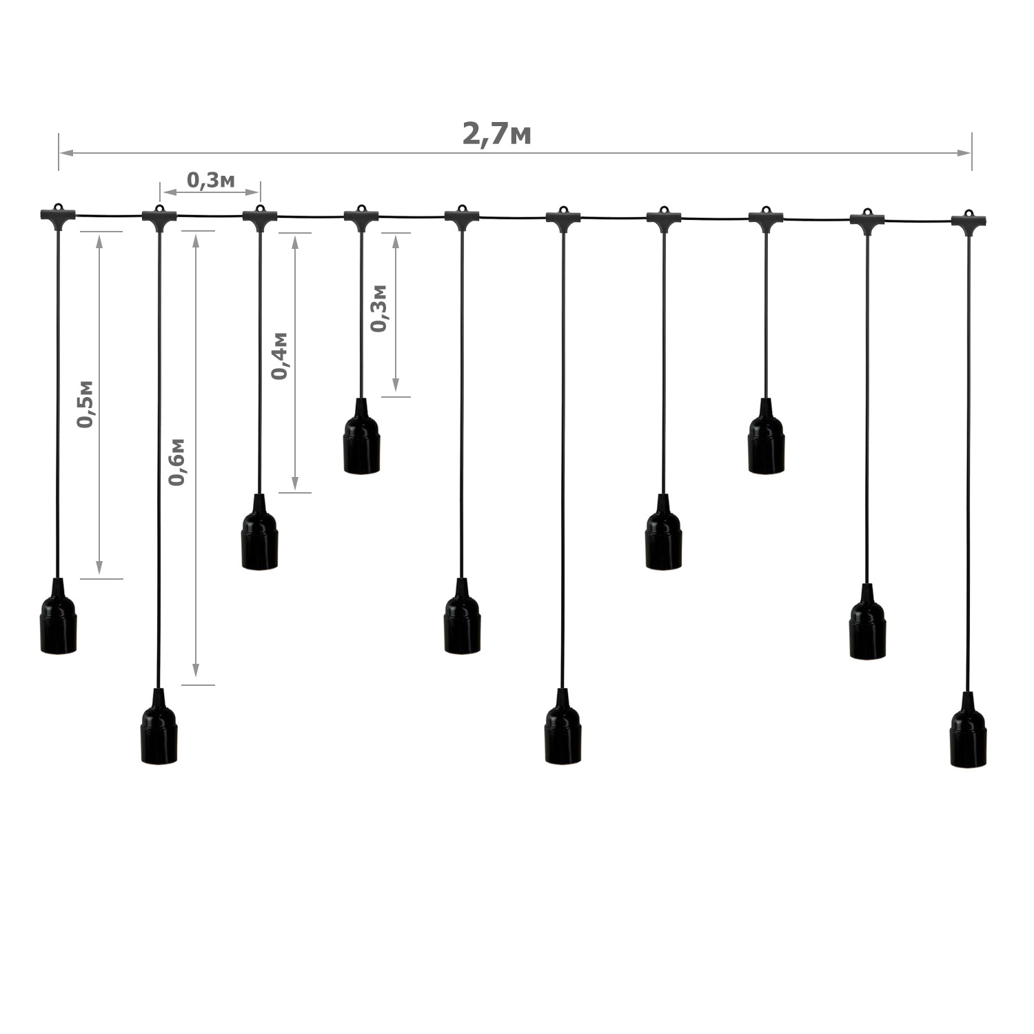 • Довжина проводу бурульки : 45см, 55см, 65см, 75см, 45см, 55см, 65см, 75см, 45см, 55см
