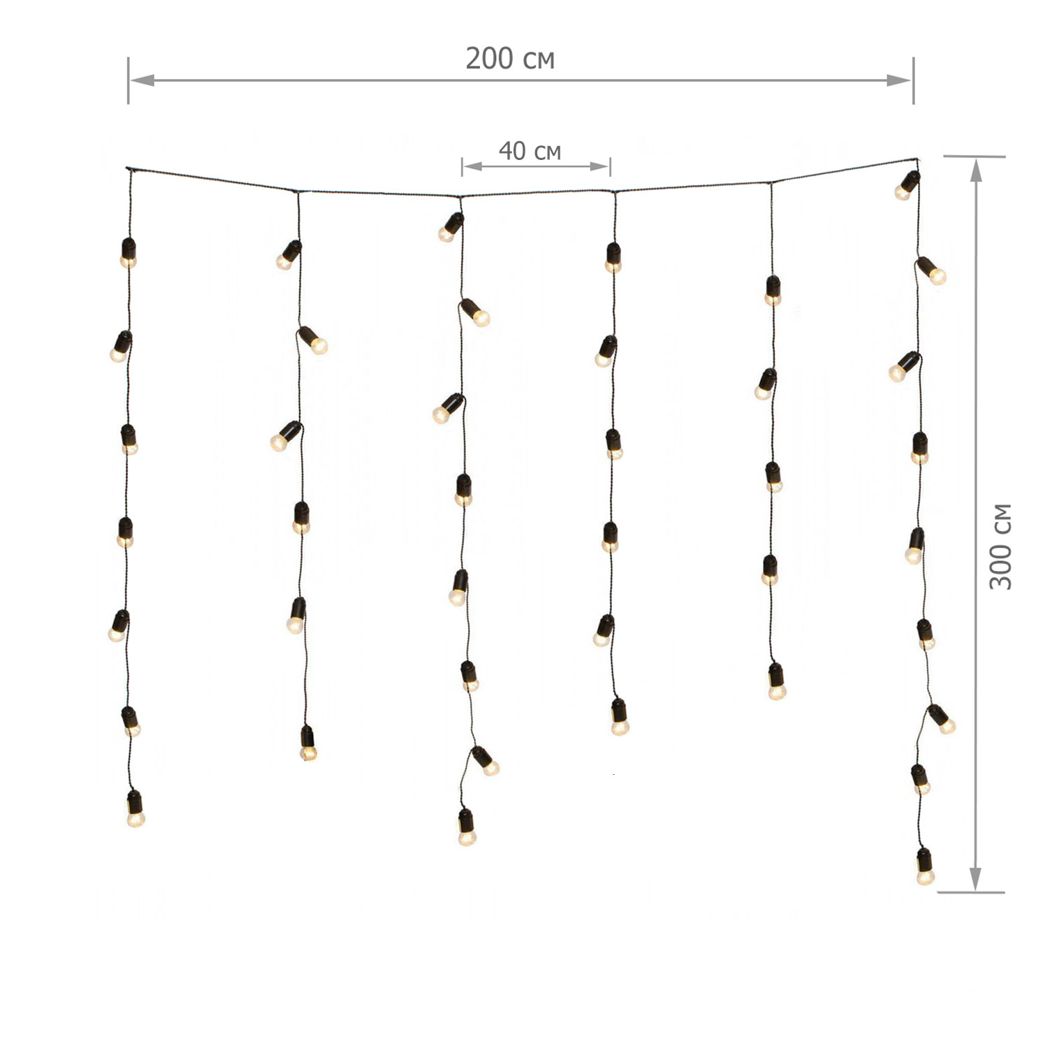 Ретро гірлянда завіса шириною 2м, довжиною 3м, 5 струн Чорна [CLONE]