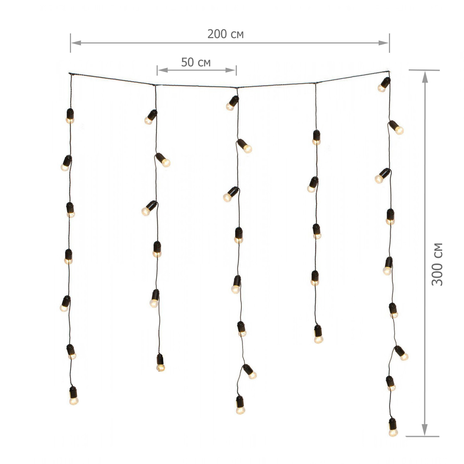 Ретро гірлянда завіса шириною 2м, довжиною 3м, 5 струн Чорна
