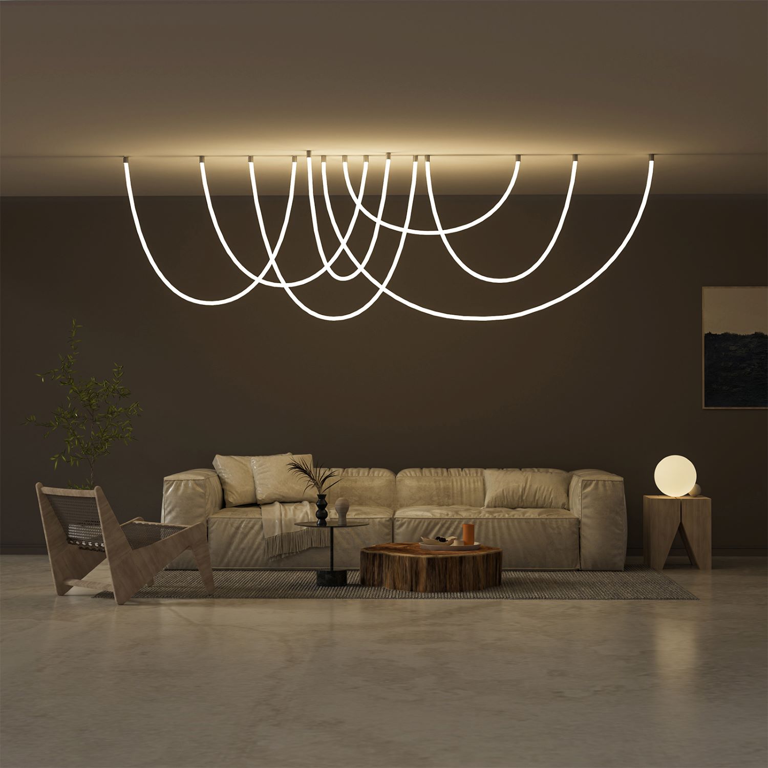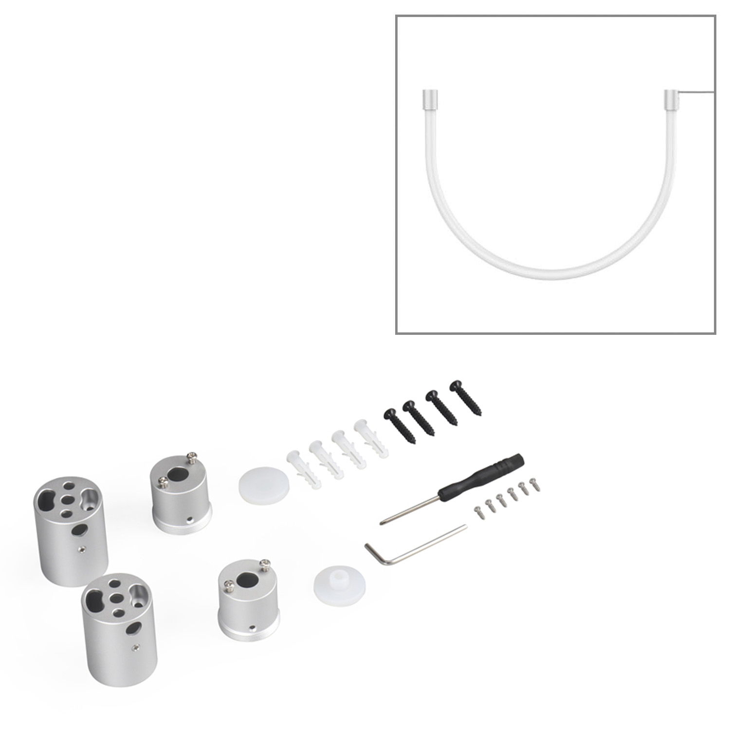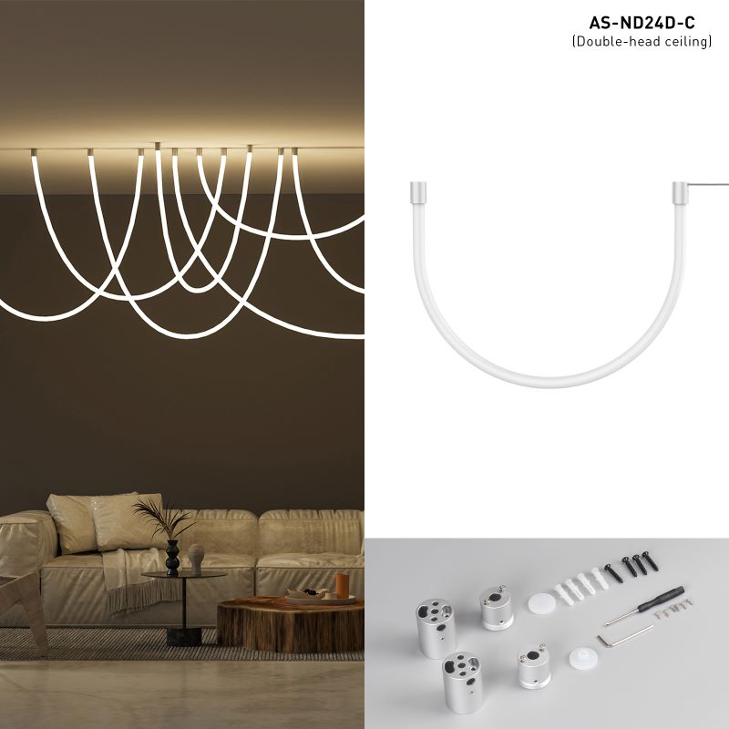 Набір аксесуарів для вертикального стельового монтажу підвісу з гнучкого неону діаметром 24 мм двосторонній.