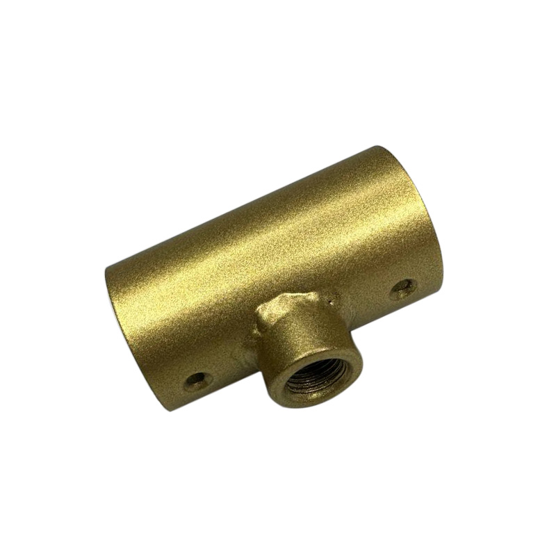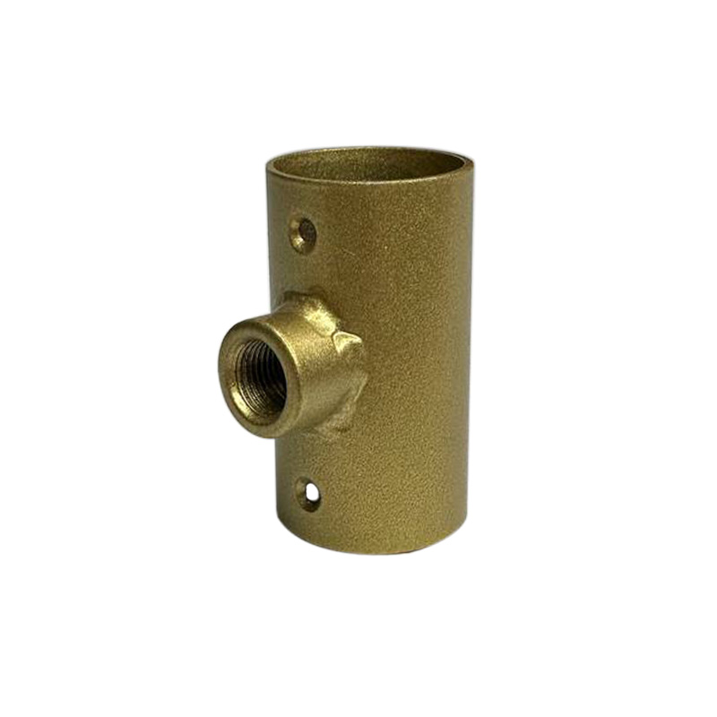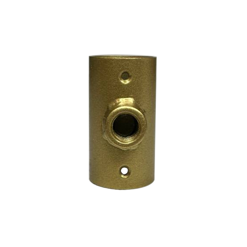 Накладка-з'єднувач Т-подібна являє собою трубку циліндричної форми з товстого металу з 2 отворами для шурупів по стінці циліндра і привареним різьбовим з'єднанням під шпильку 10 мм у вигляді меншого циліндра діаметром 15 мм.