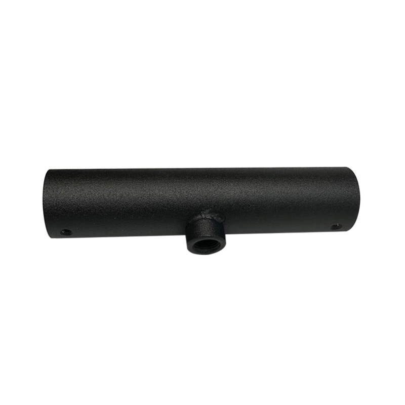 З'єднувач Т-подібний являє собою трубку циліндричної форми з товстого металу діаметром 26 мм з 2 отворами для шурупів по стінці циліндра і привареним різьбовим з'єднанням під шпильку 10 мм у вигляді меншого циліндра діаметром 15 мм.