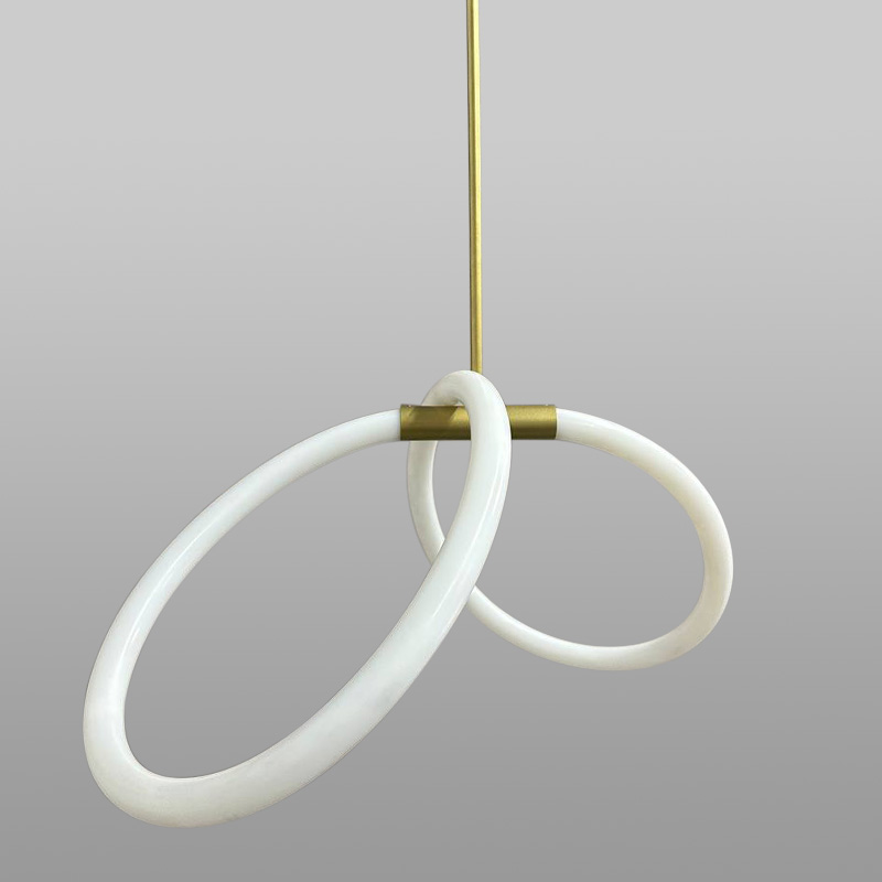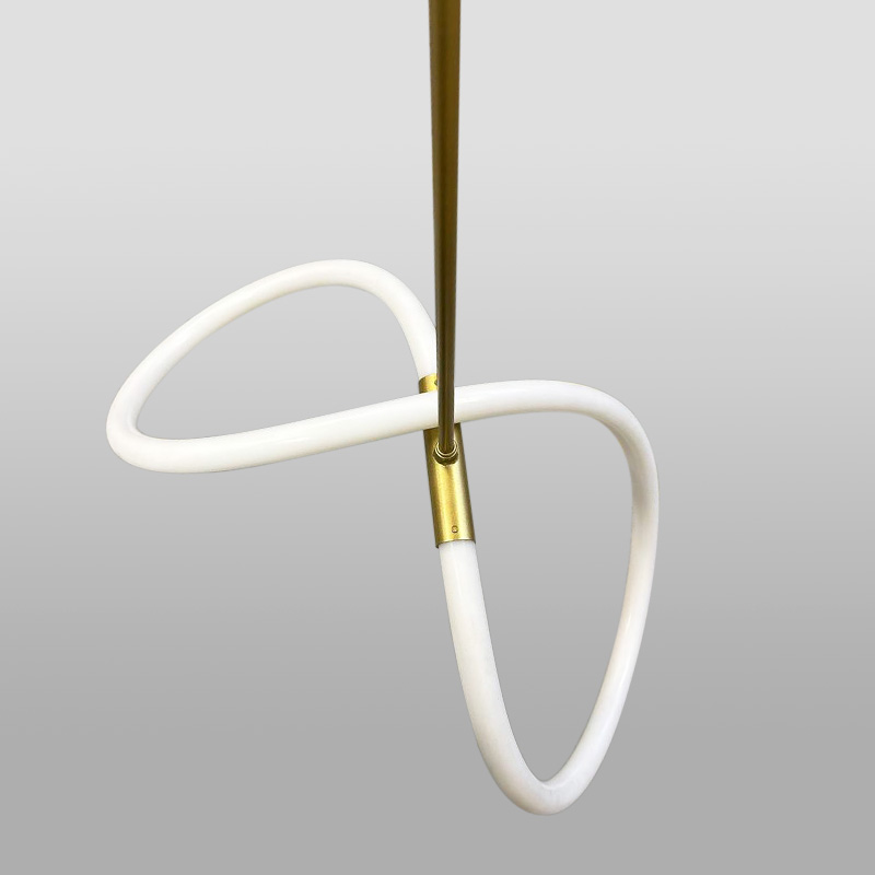 Оригінальна люстра Nordik Infinity виконана з металевого каркасу в кольорі золото, до якого прикріплений гнучкий круглий LED неон діаметром 24 мм, білого матового кольору, всередині якого проходить світлодіодна стрічка. В результаті заломлення світла у включеному стані виходить неонова дуга, що рівномірно світиться.