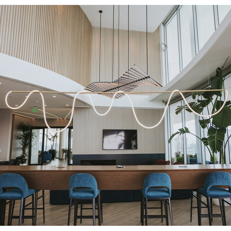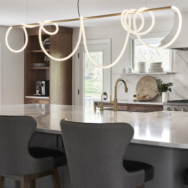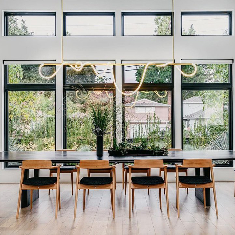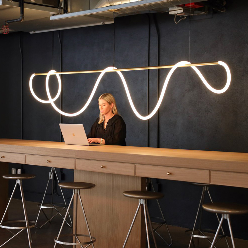 Оригінальна люстра Nordik С неон виготовлена з металевого трубчастого каркаса, до якого прикріплений гнучкий, круглий LED неон 22mm, білого матового кольору, всередині якого проходить світлодіодна стрічка. В результаті заломлення світла у включеному стані виходить неонова дуга, що рівномірно світиться.