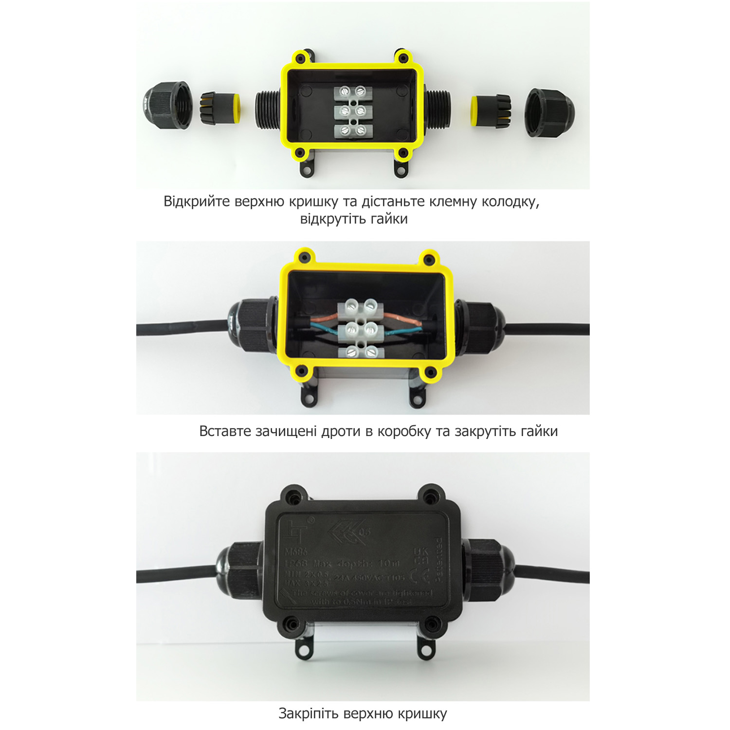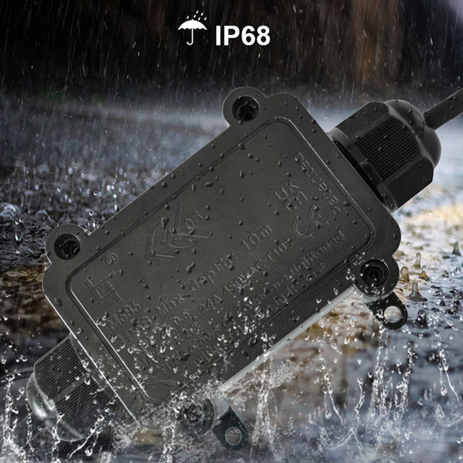 Завдяки водонепроникному дизайну та класу захисту до IP68, а також вогнестійкості, пиленепроникності та удароміцності, розподільна коробка забезпечить безпеку експлуатації під сонцем або в дощові/сніжні дні.