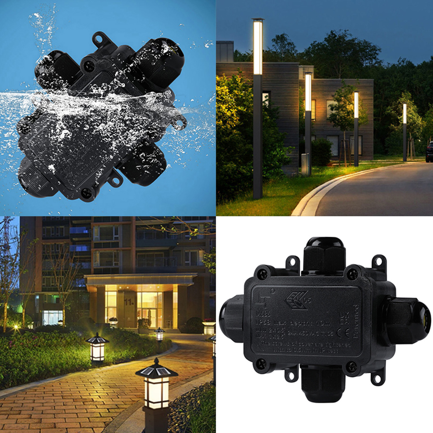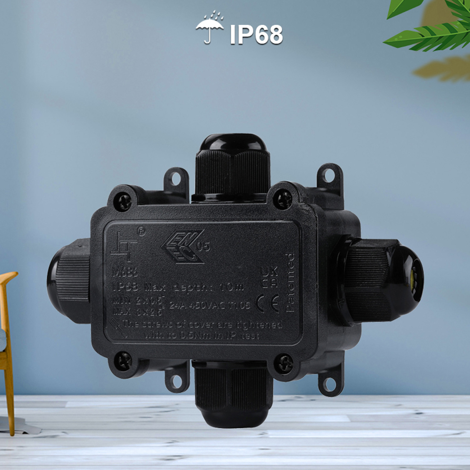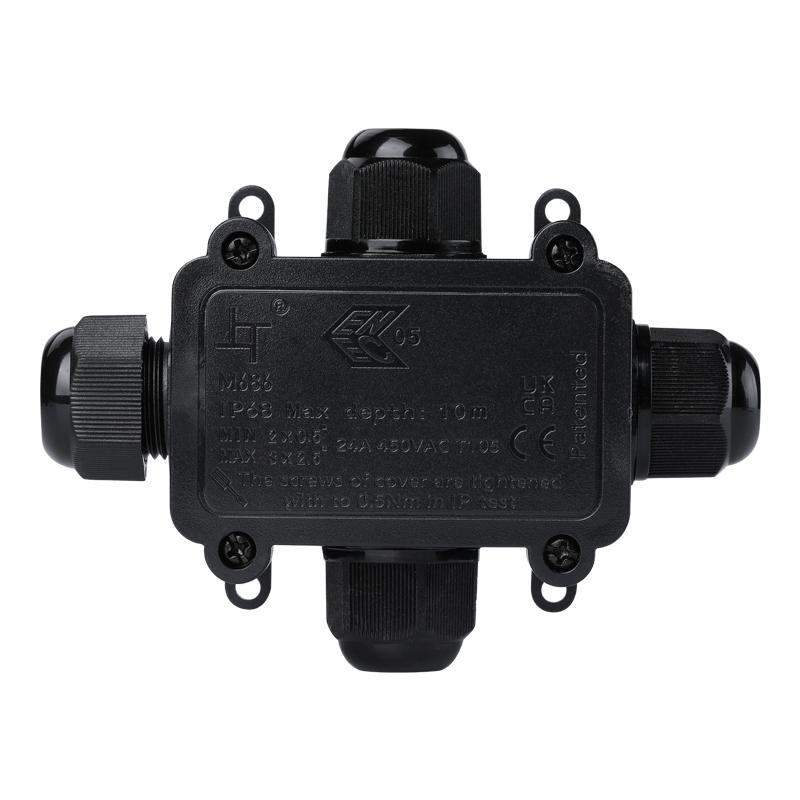 Завдяки водонепроникному дизайну та класу захисту до IP68, а також вогнестійкості, пиленепроникності та удароміцності, розподільна коробка забезпечить безпеку експлуатації під сонцем або в дощові/сніжні дні.