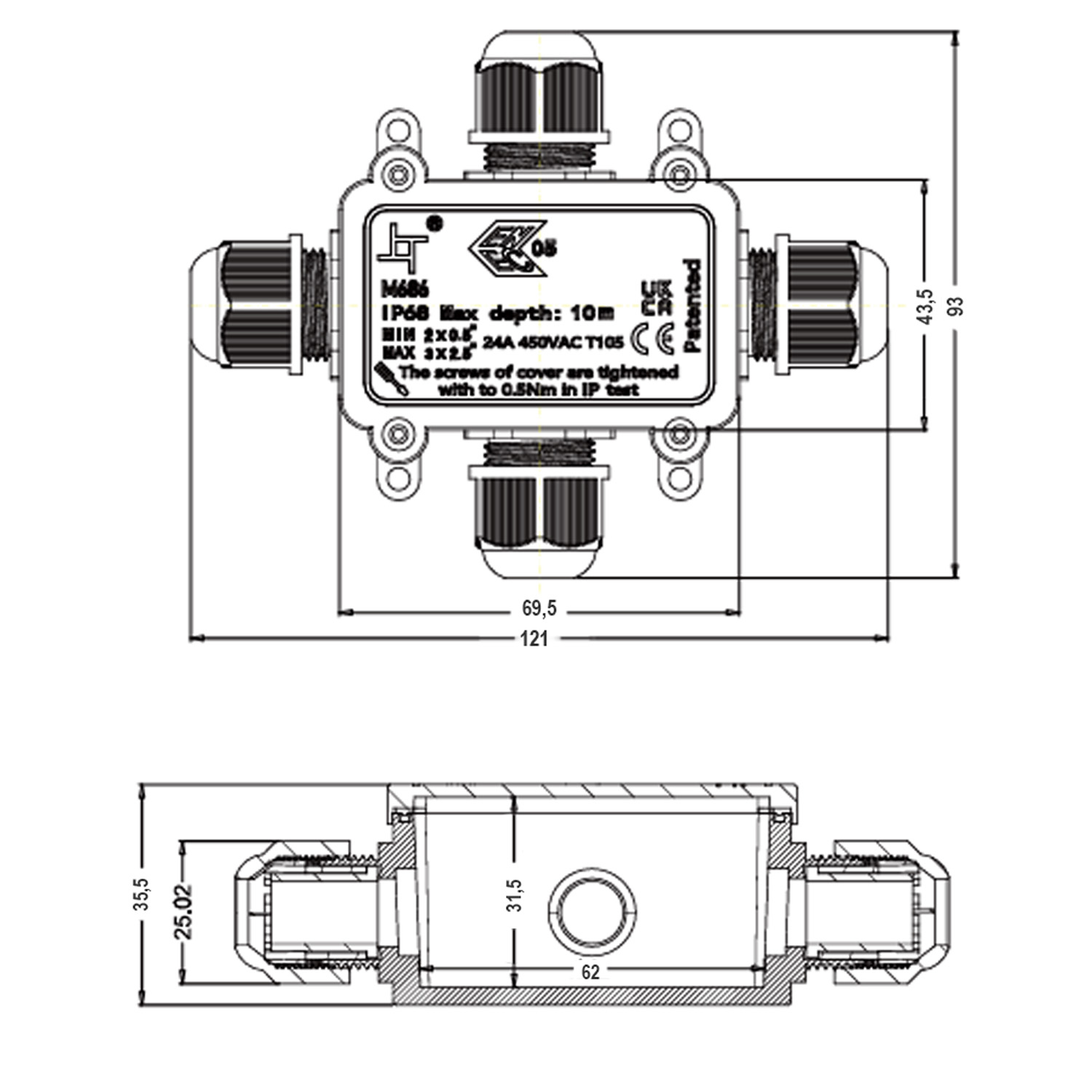 Коробка розподільна герметична M686-4 4xM20 (6-11мм) з високим ступенем захисту IP68. Виготовлена із високоякісного матеріалу, відрізняється тривалим терміном служби, стійкістю до високих температур та зносу.