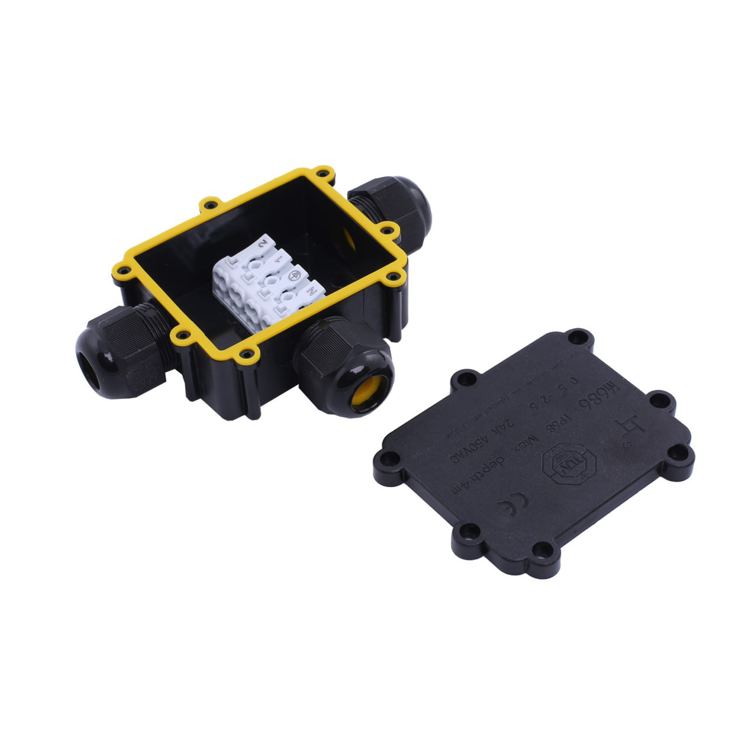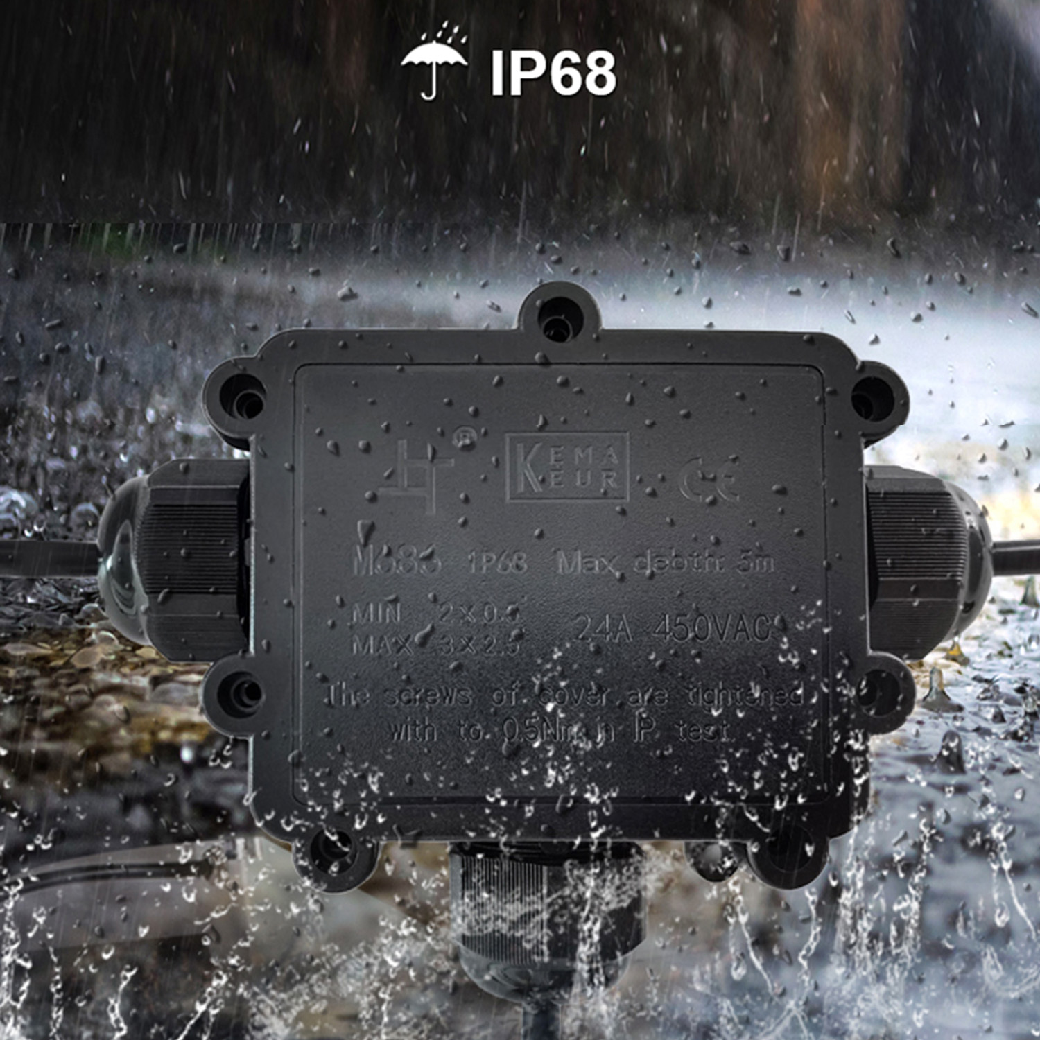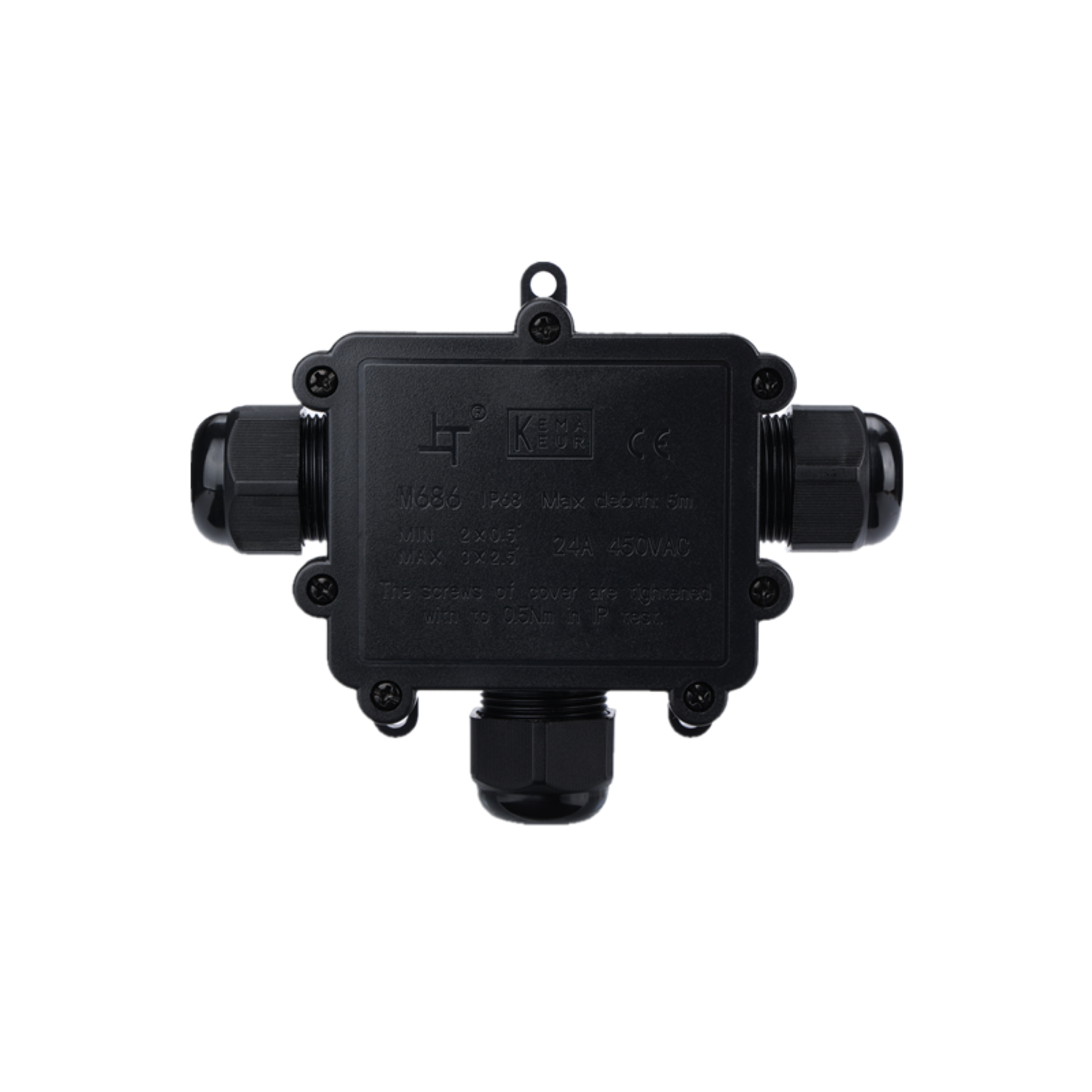 Завдяки водонепроникному дизайну та класу захисту до IP68, а також вогнестійкості, пиленепроникності та удароміцності, розподільна коробка забезпечить безпеку експлуатації під сонцем або в дощові/сніжні дні.