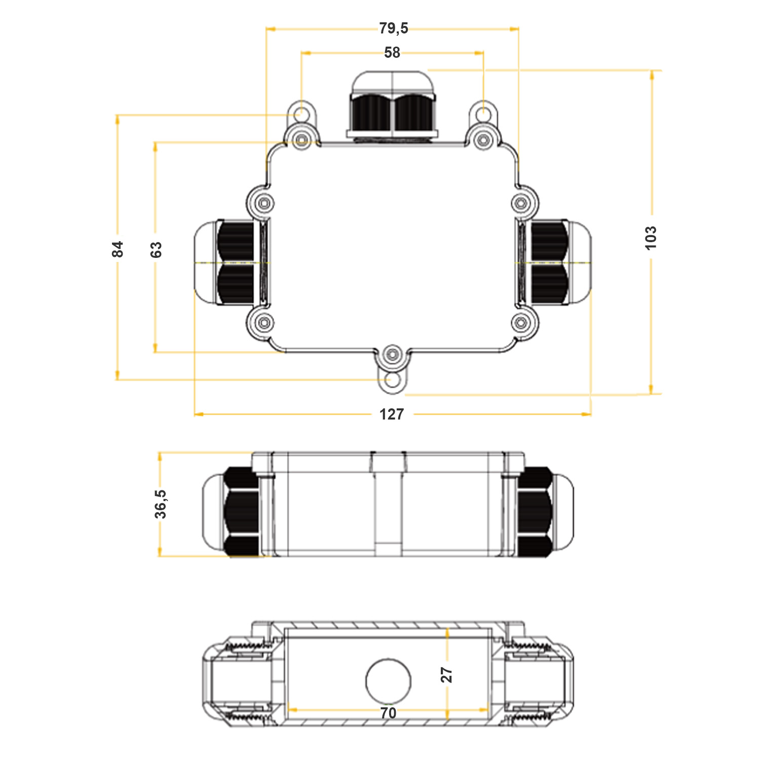 Діаметр кабелю: 3xM25 (4-8 мм)