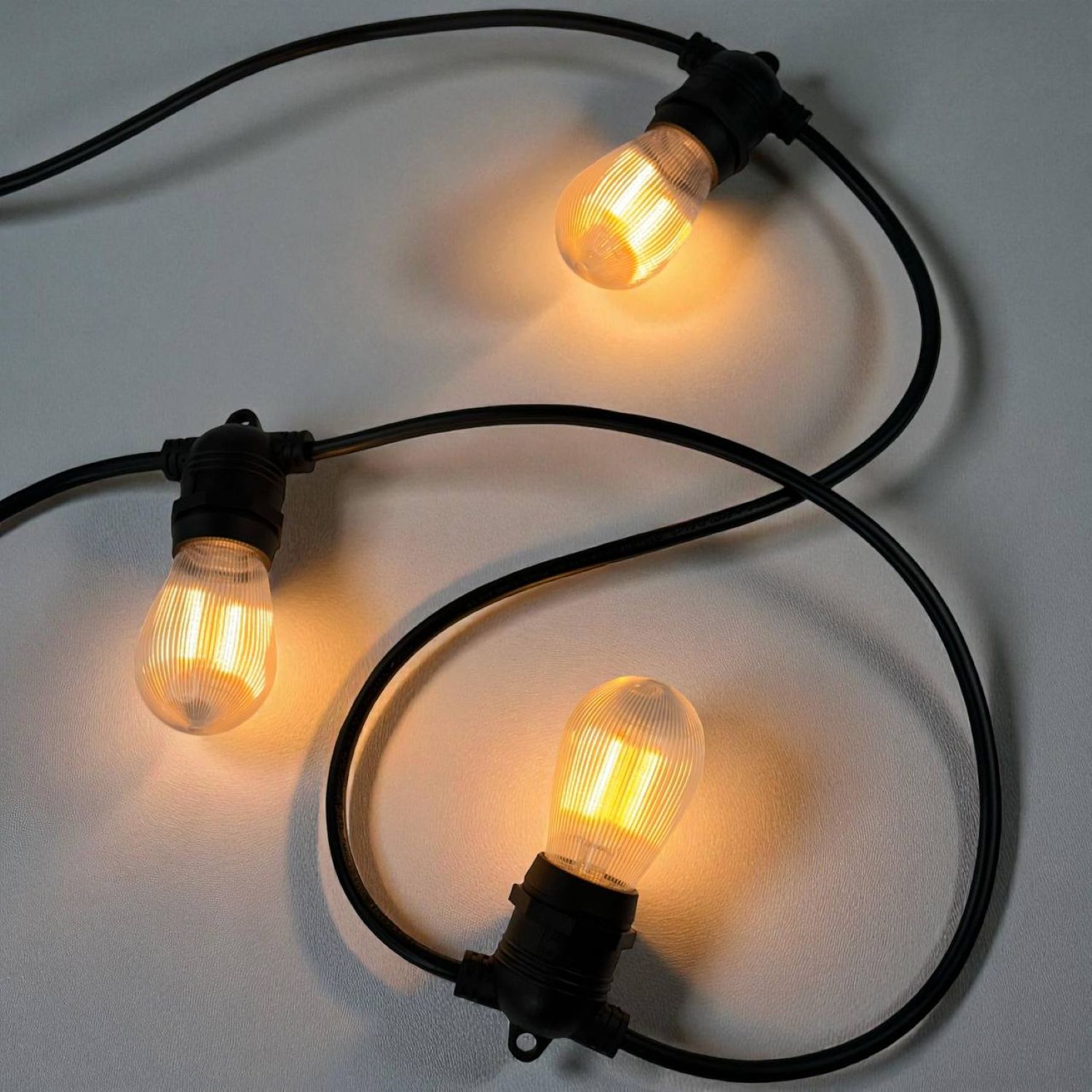 Прозора колба з пластику, що є оптимальним рішенням для використання в гірляндах (її буде складніше розбити, на відміну від лампочки зі скляною колбою).
