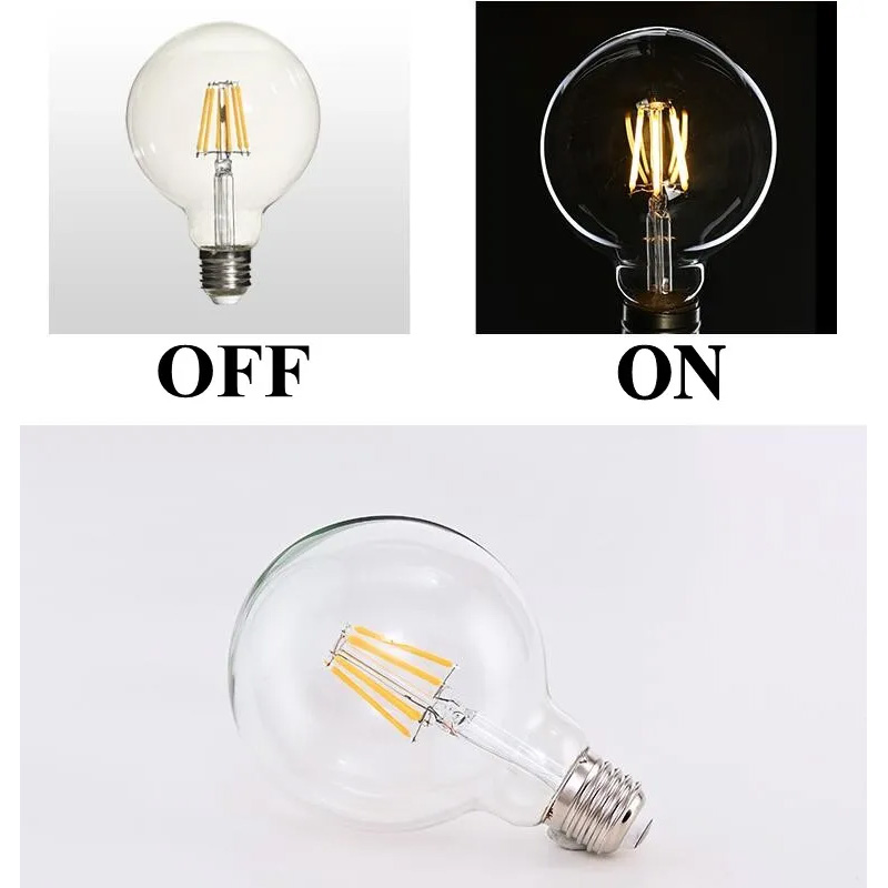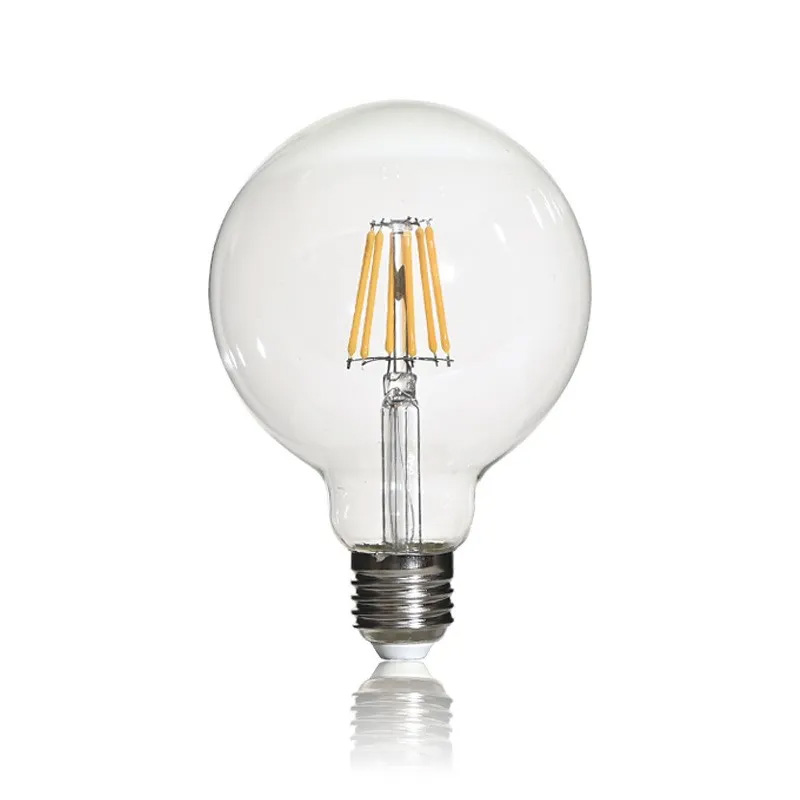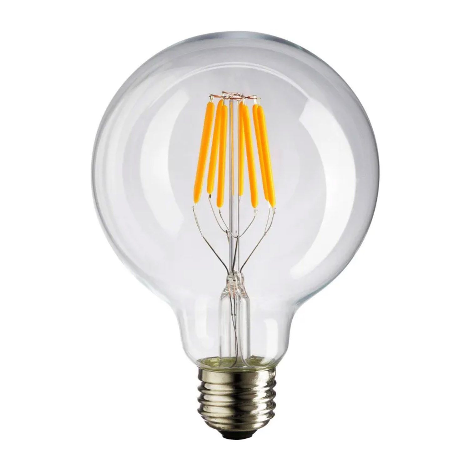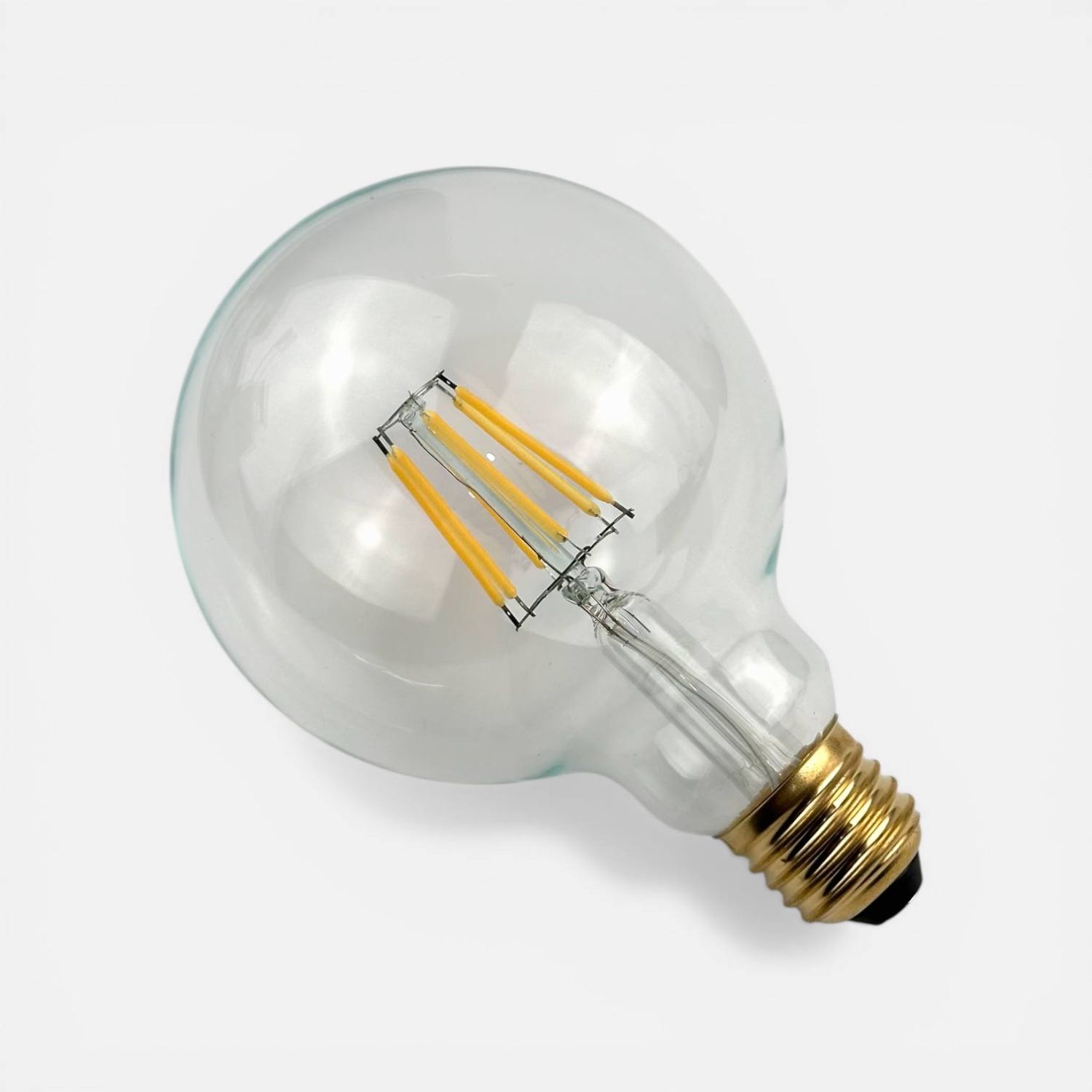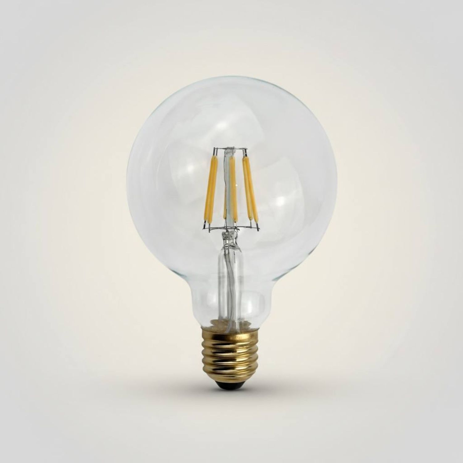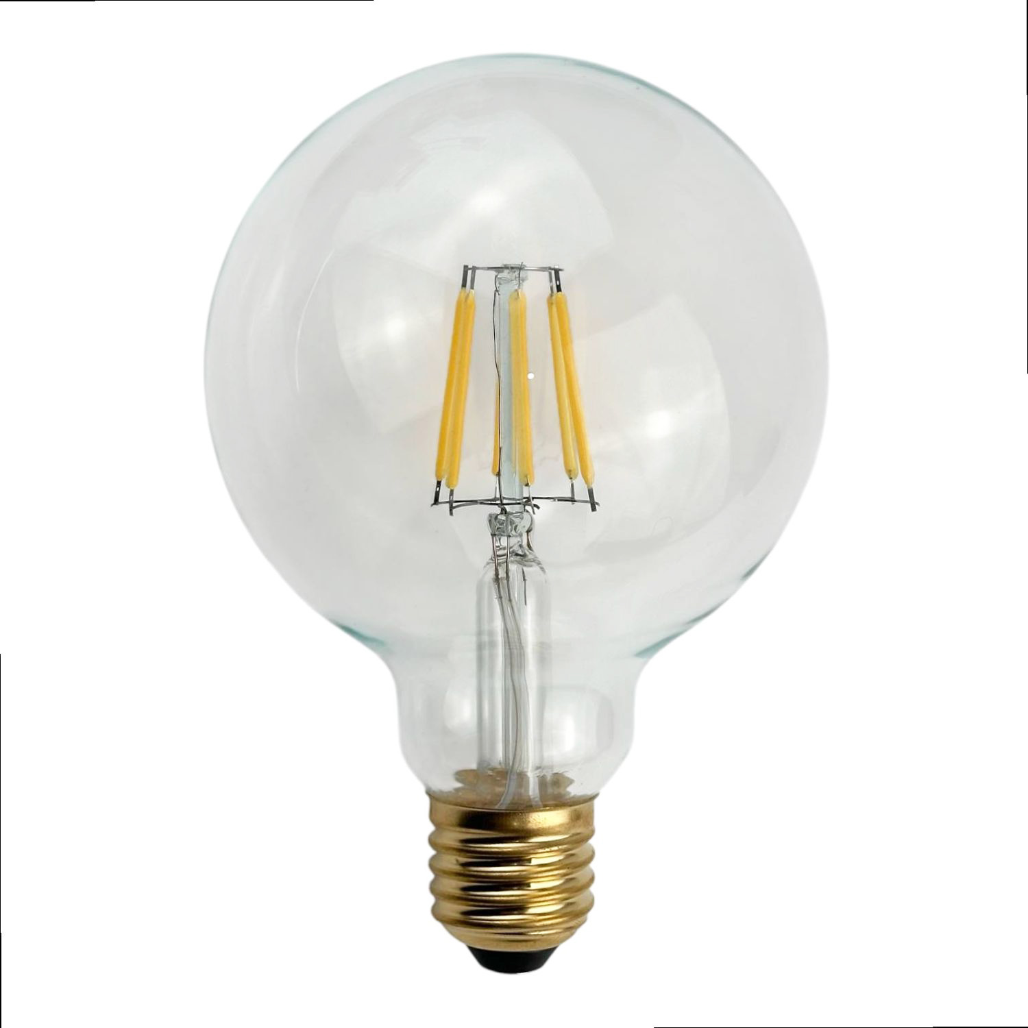 Світлодіодна філаментна LED лампа G95 E27 6W 4100К. Призначена для внутрішнього освітлення житлових приміщень та для використання у освітлювальних приладах (з відповідним ступенем захисту), розміщених зовні приміщень.