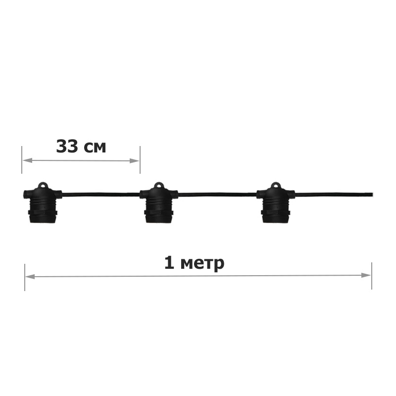 Уличная ретро гирлянда Стринг Лайт Е27 IP65 влагозащищенная (шаг 33см, 3 патрона Е27 на метр) Premium [CLONE] [CLONE]