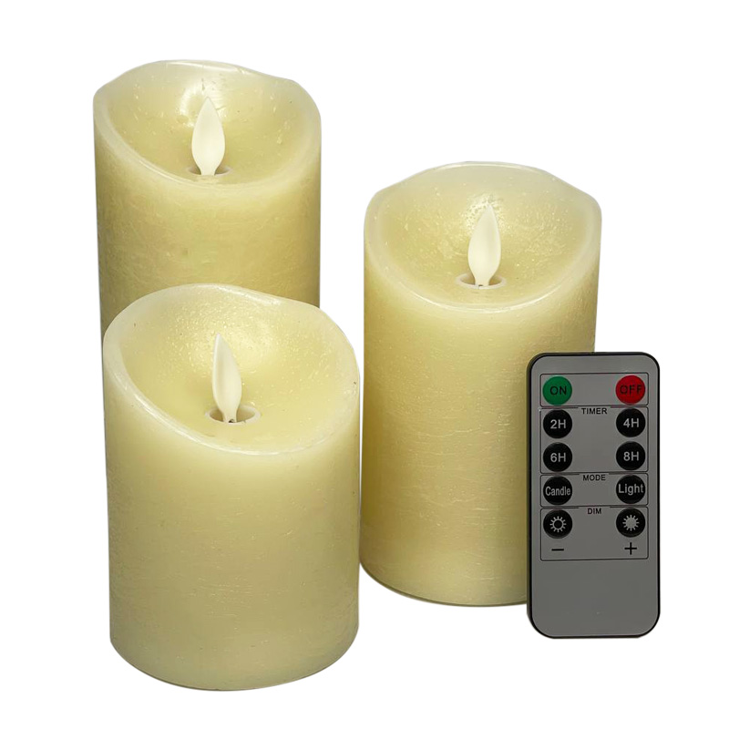 Комплект складається з 3 свічок висотою 10 см, 12,5 см і 15 см. Діаметр усіх свічок 7,5 см. Верх свічки має фігурну поверхню, імітуючі вигляд справжньої свічки. Свічки покриті парафіном і дуже приємні на дотик.