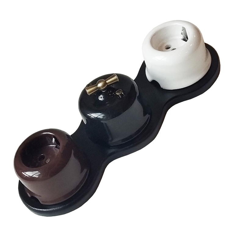 Дерев'яна рамка в чорному кольорі (береза) на 3 пости для накладних ретро-вимикачів та розеток Softy.