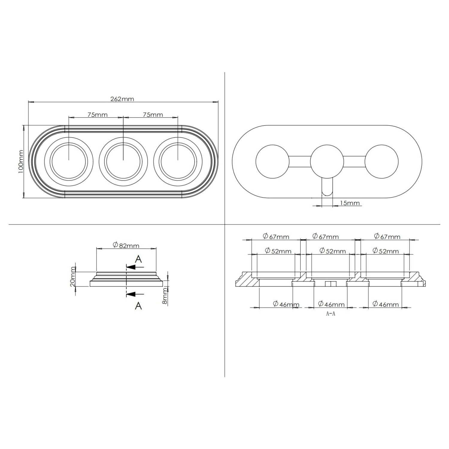 - Розмір: 262×20×100мм