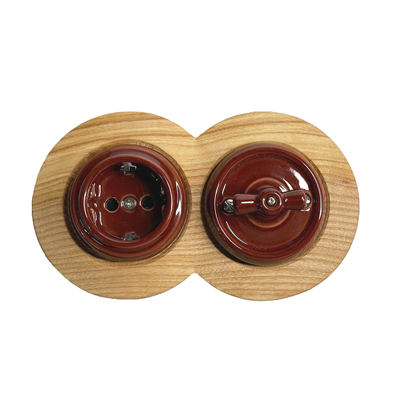 Естетична дерев'яна рамка з ясеню — стильний та функціональний елемент для оформлення розеток або вимикачів в інтер'єрах із ретро-проводкою. Натуральна текстура деревини привносить тепло та фактурність, роблячи простір більш затишним та гармонійним.