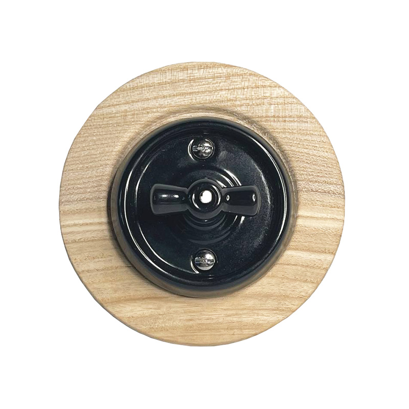 Естетична дерев'яна рамка з ясеню — стильний та функціональний елемент для оформлення розеток або вимикачів в інтер'єрах із ретро-проводкою. Натуральна текстура деревини привносить тепло та фактурність, роблячи простір більш затишним та гармонійним.