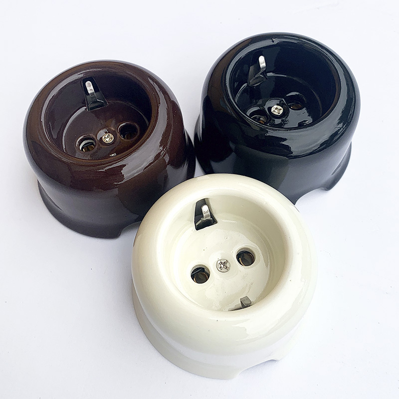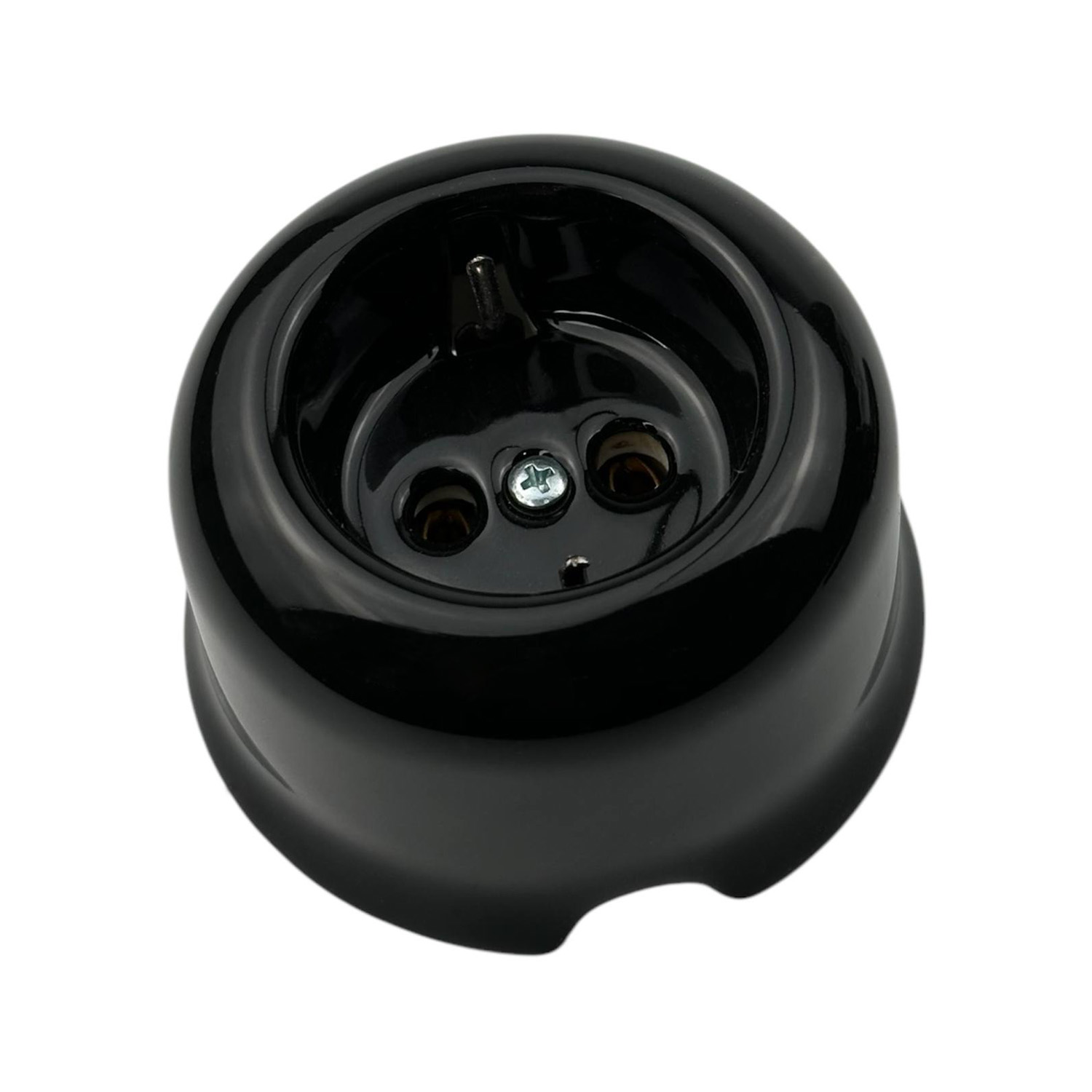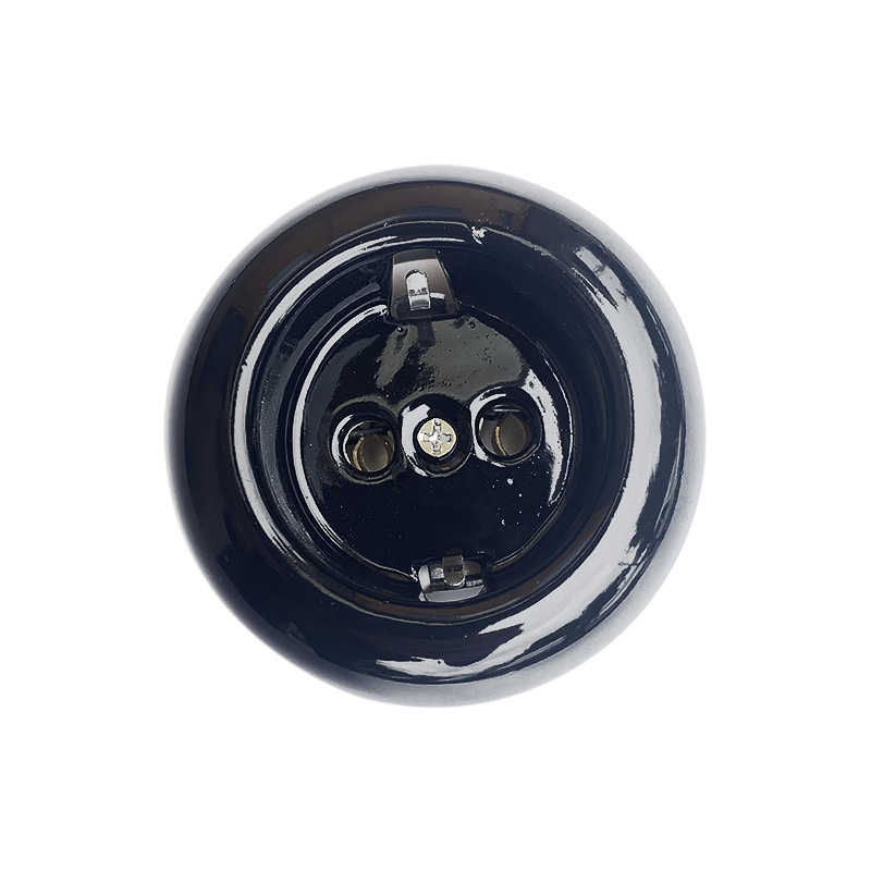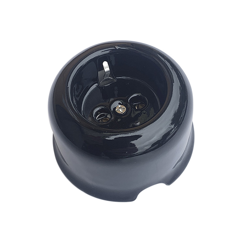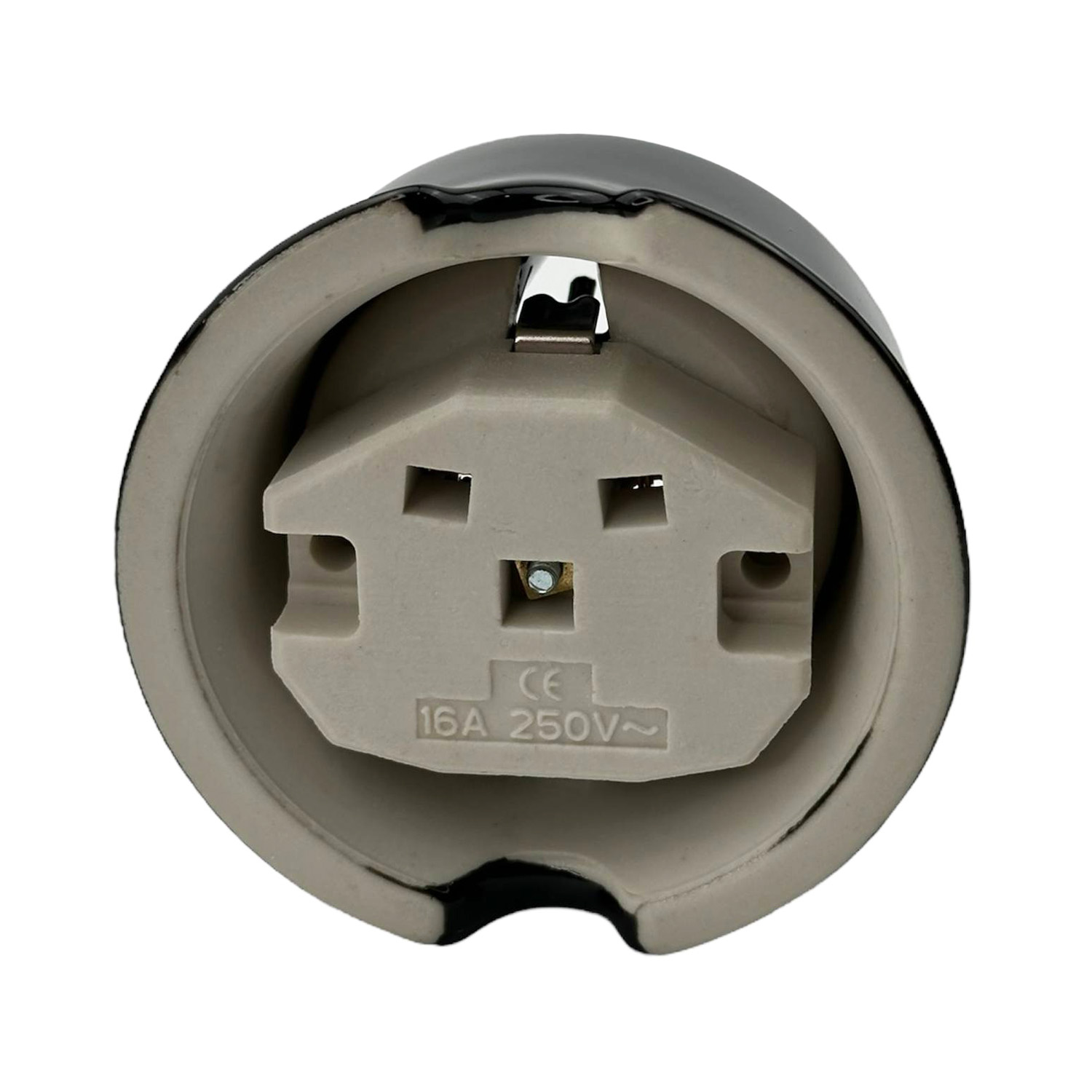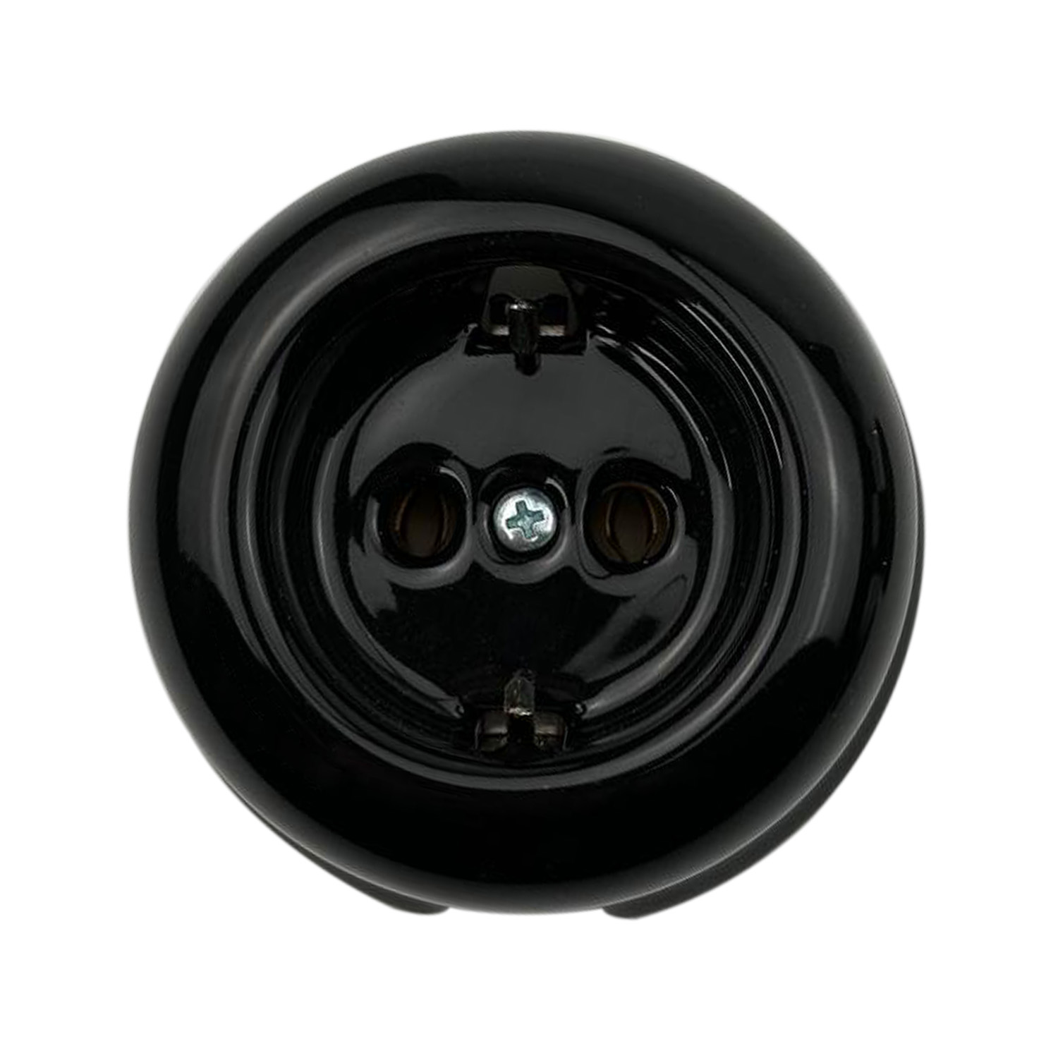 Корпус розетки виготовлений з електротехнічної кераміки, яка має високу термостійкість і довговічність. Завдяки технології запікання покриття при високій температурі поверхня зберігає глибокий чорний колір та стійкість до зношування. Керамічна контактна основа забезпечує підвищену безпеку та здатність витримувати значні електричні навантаження у порівнянні з пластиковими аналогами.