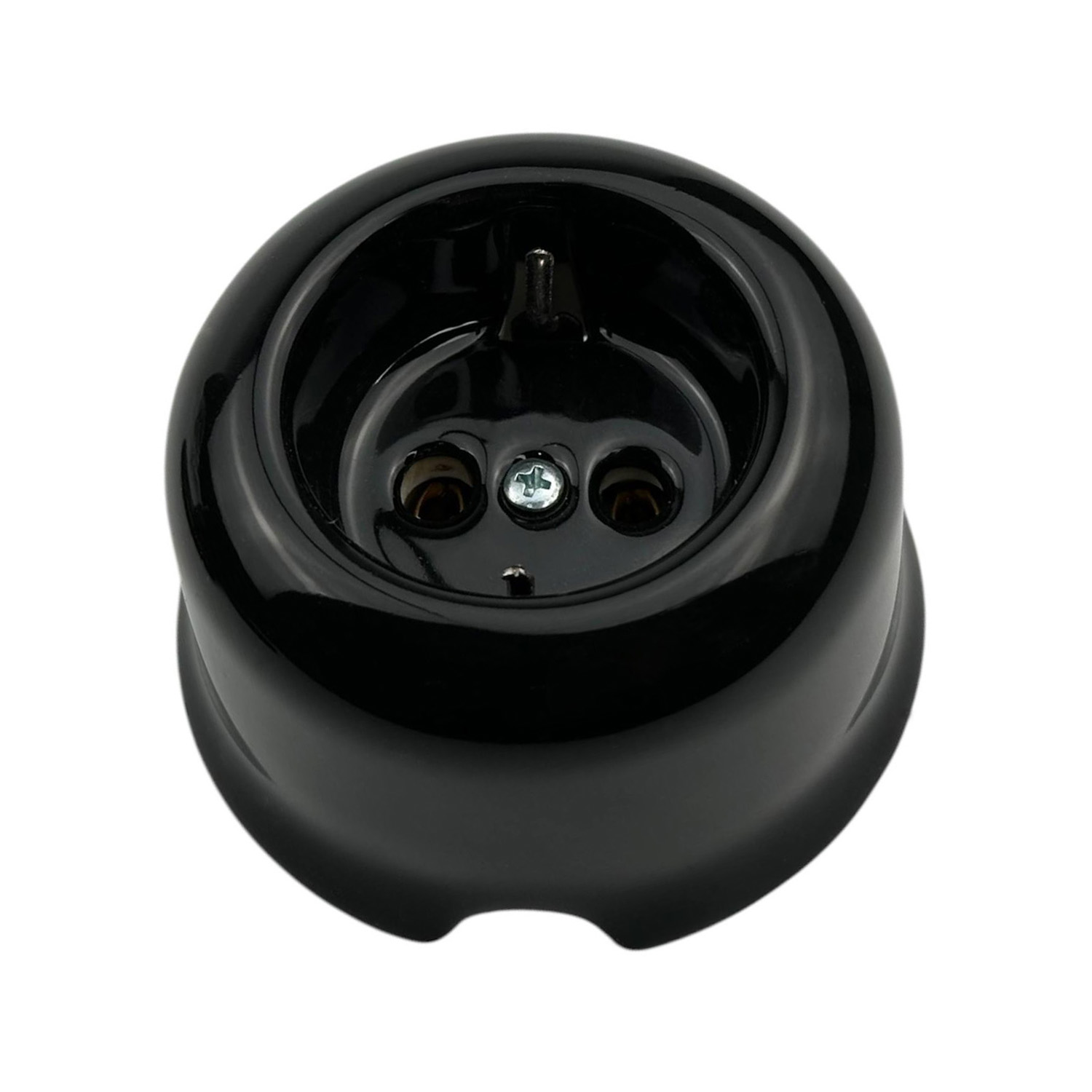 Керамічна розетка SOFTY Black — стильний елемент для відкритої ретро-проводки, який поєднує вінтажну естетику та сучасну надійність. Серія SOFTY відрізняється м’якими округлими формами та акуратними гранями, що створює характерний «чесний» ретро-стиль і гармонійно доповнює інтер’єри у стилях лофт, ретро, кантрі, скандинавський або шале.
