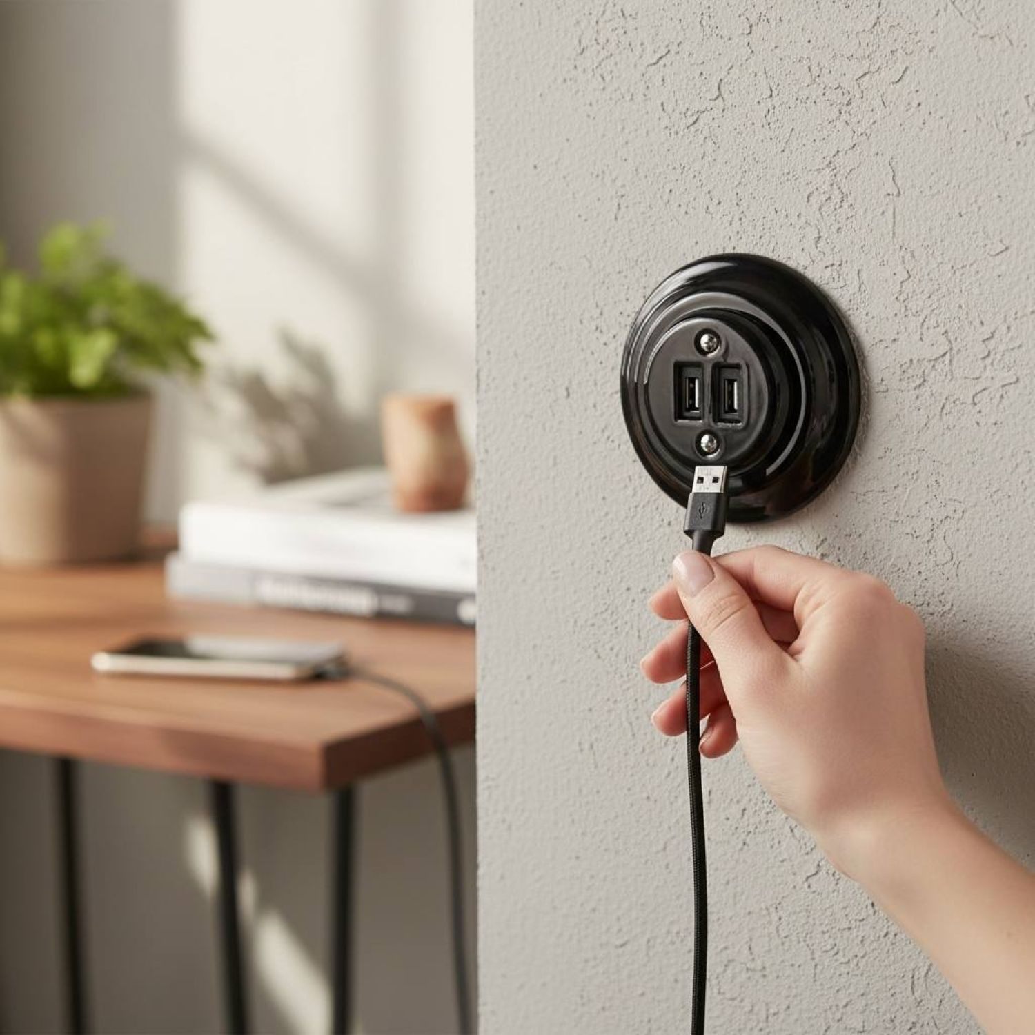 Стильне та практичне рішення для сучасного інтер’єру. Два USB-порти дозволяють зручно заряджати гаджети без адаптерів, а керамічний корпус додає естетики та довговічності.