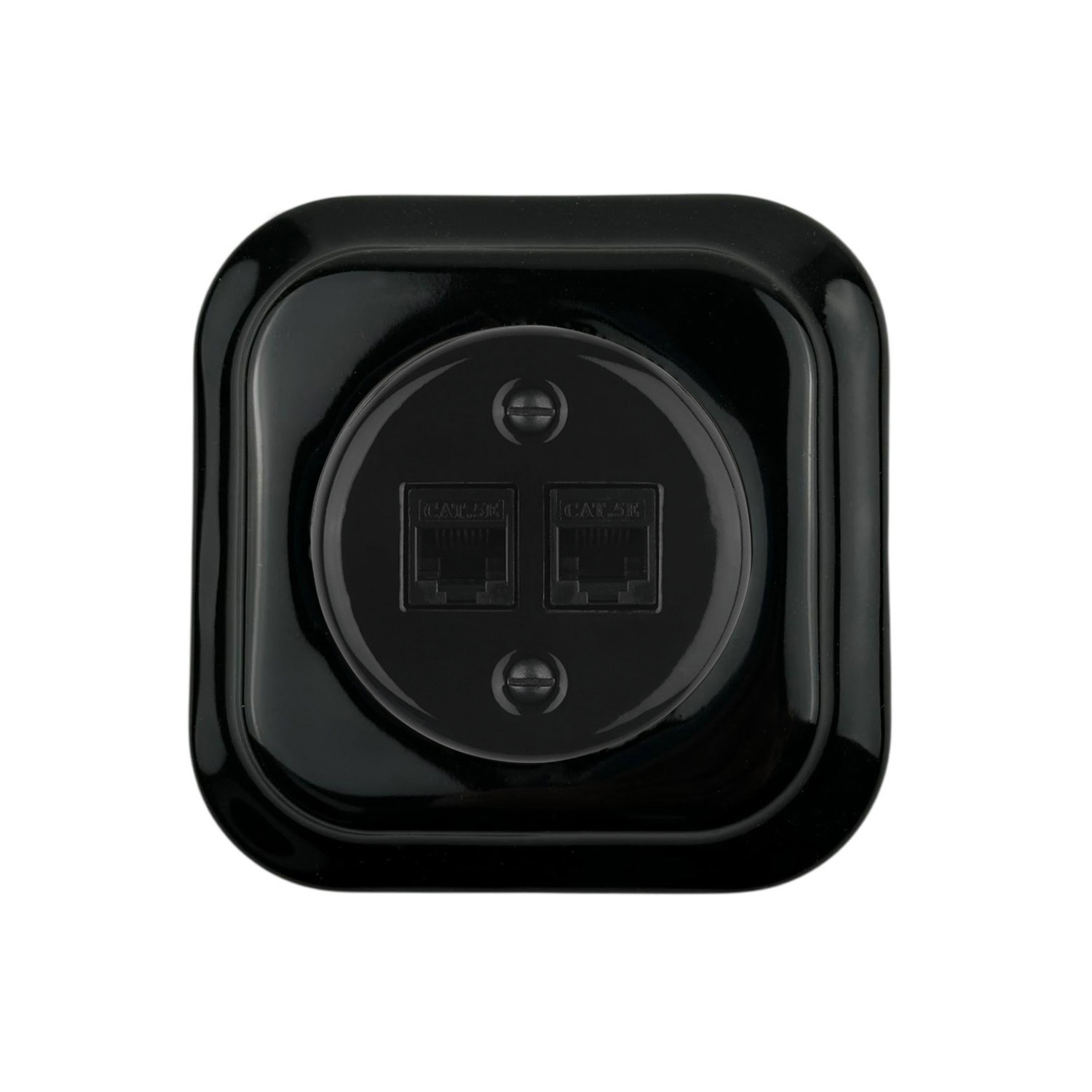 Розетка керамічна чорна комп’ютерна (RJ45) з квадратною рамкою, прихований монтаж