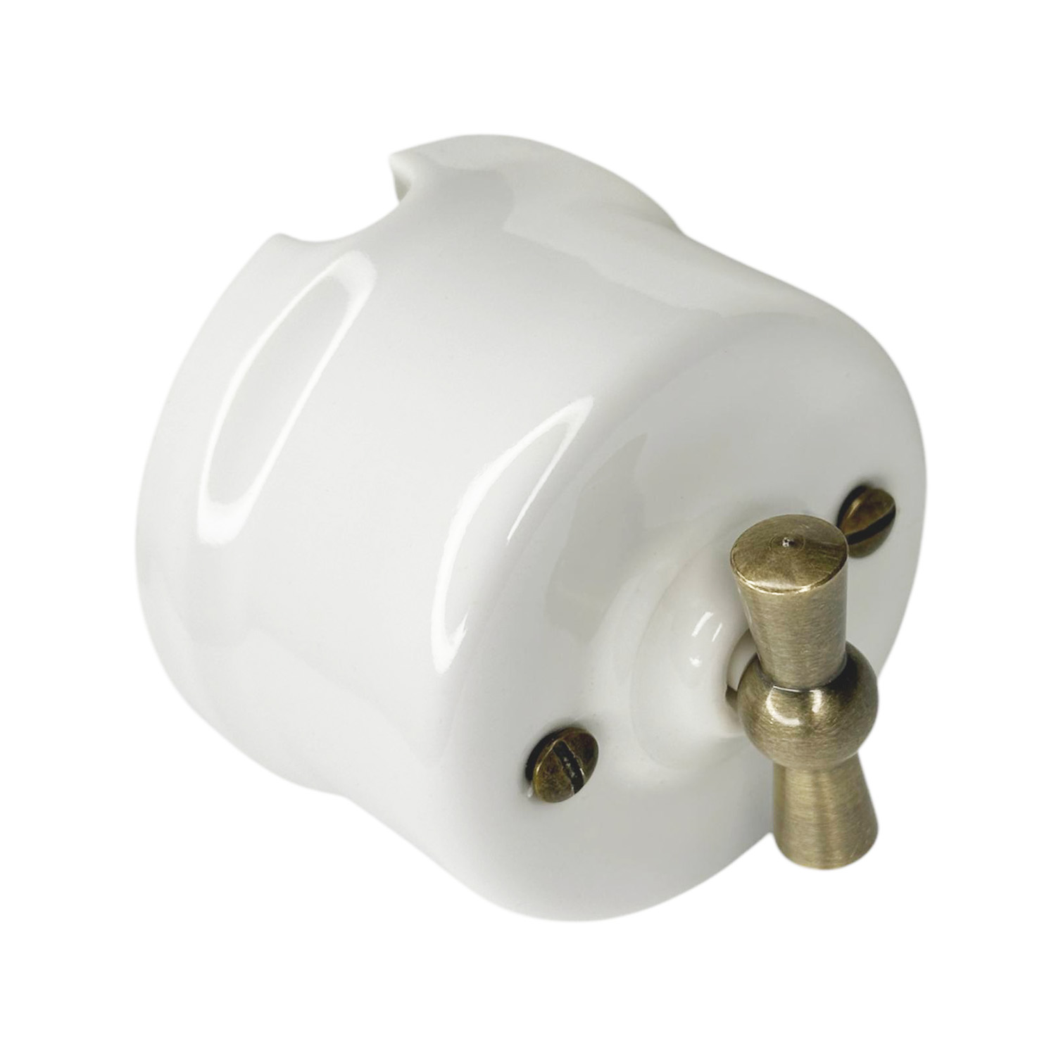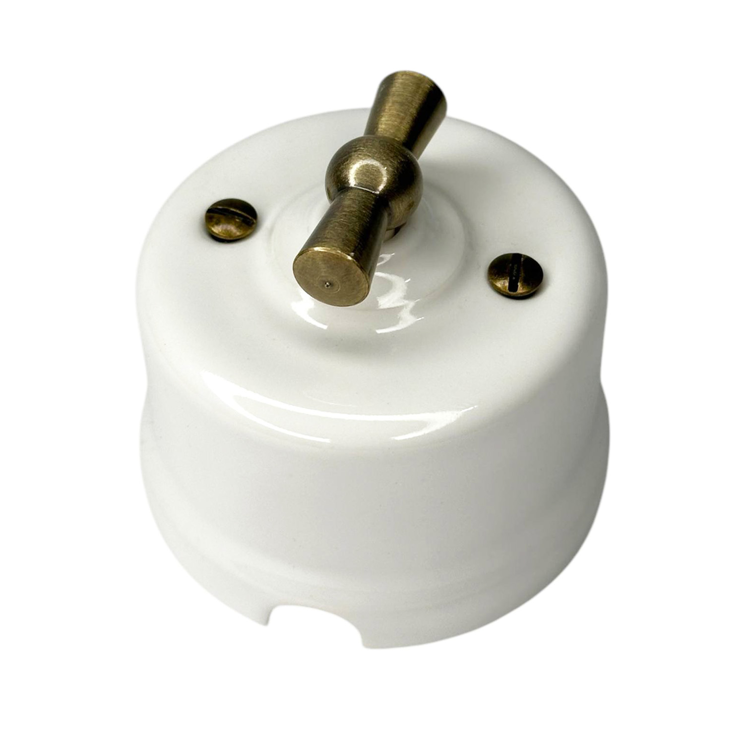 Ретро вимикач керамічний Keruida білий 1-клавішний з бронзовою ручкою без рамки