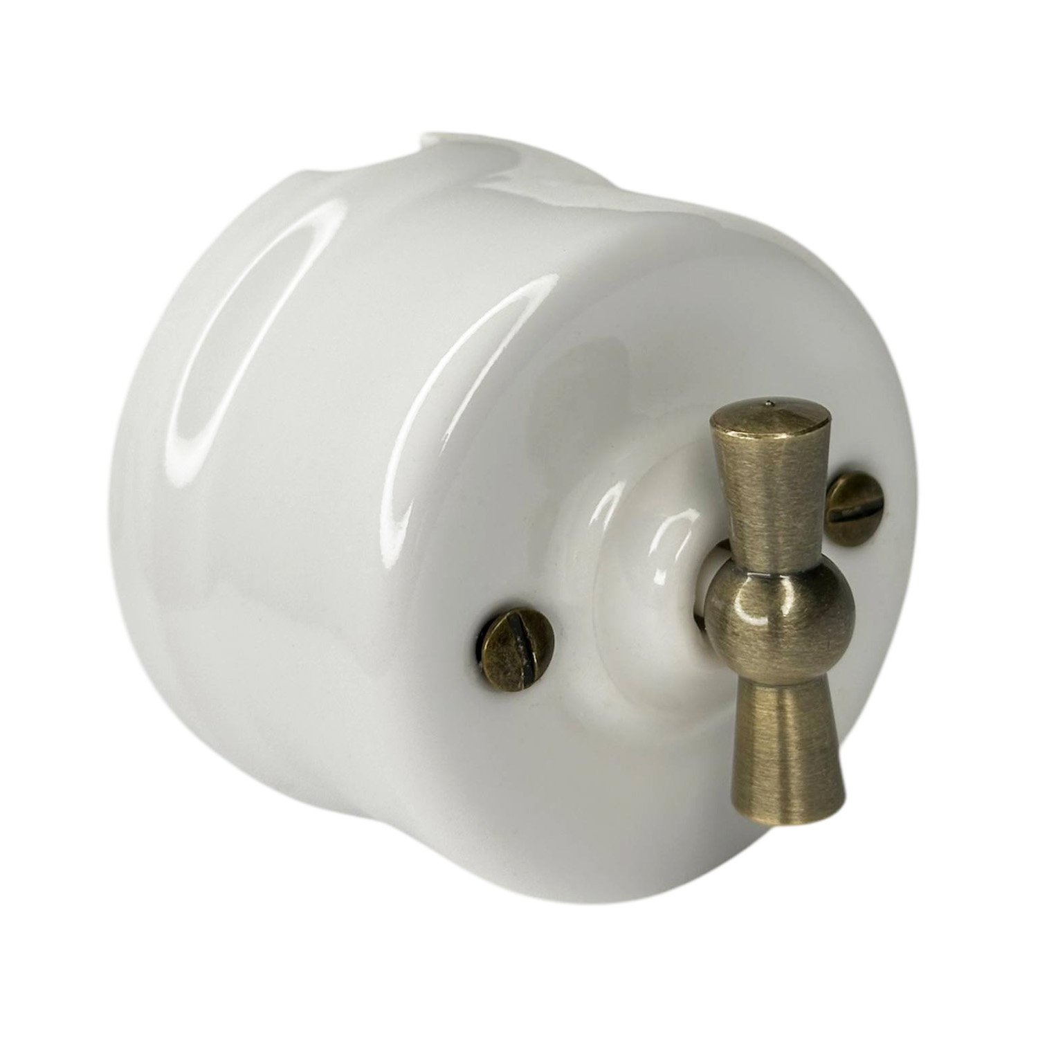 Ретро вимикач керамічний Keruida білий 2-клавішний з бронзовою ручкою без рамки