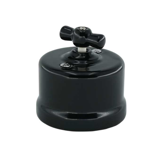 Керамічний ретро вимикач Keruida у чорному кольорі — стильне поєднання класичного дизайну та сучасної надійності. Лаконічна кругла форма та глянцева поверхня роблять його елегантним елементом інтер’єру у стилях лофт, вінтаж, ретро, індустріальний або скандинавський.