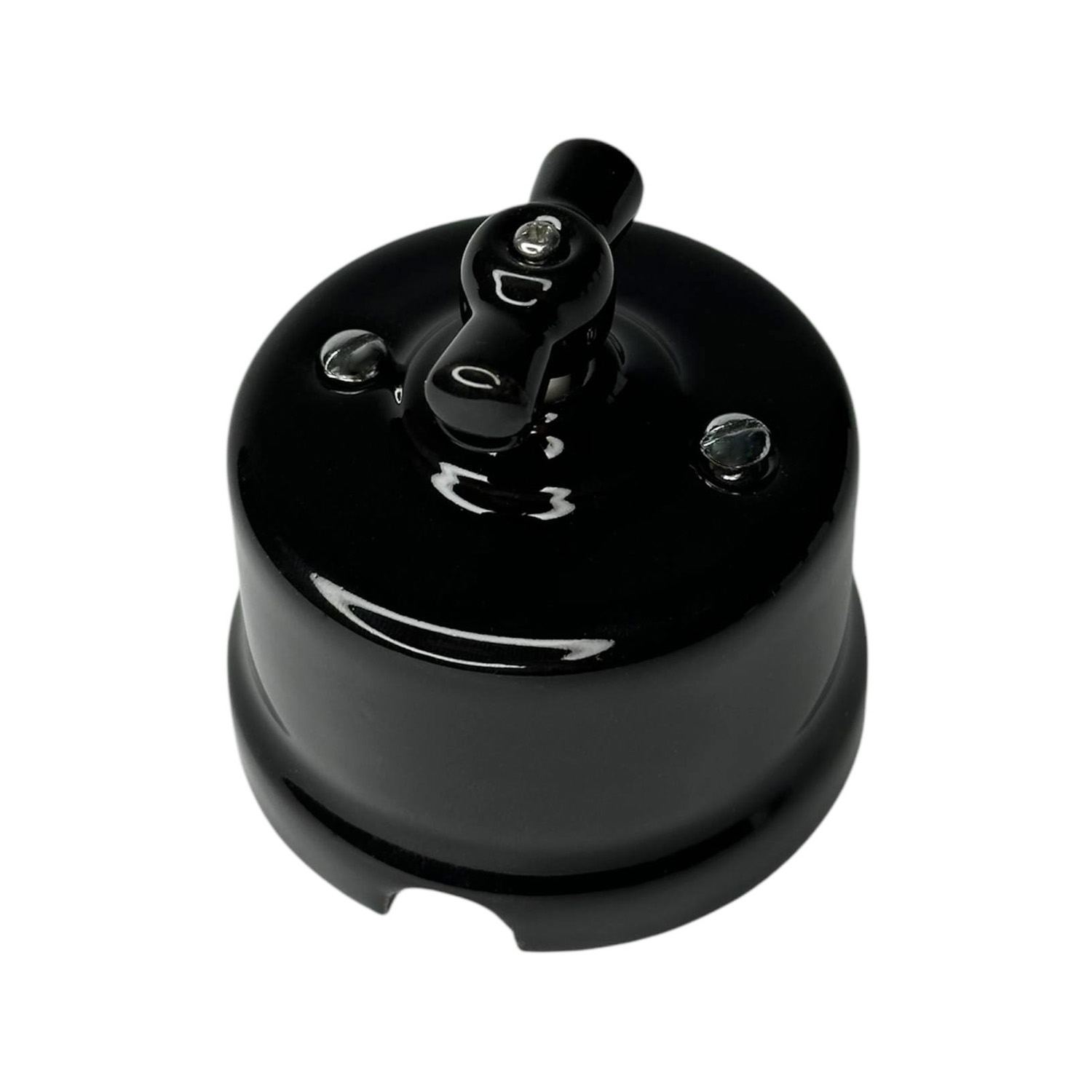 Ретро вимикач керамічний Keruida чорний, 2-клавішний (без рамки)