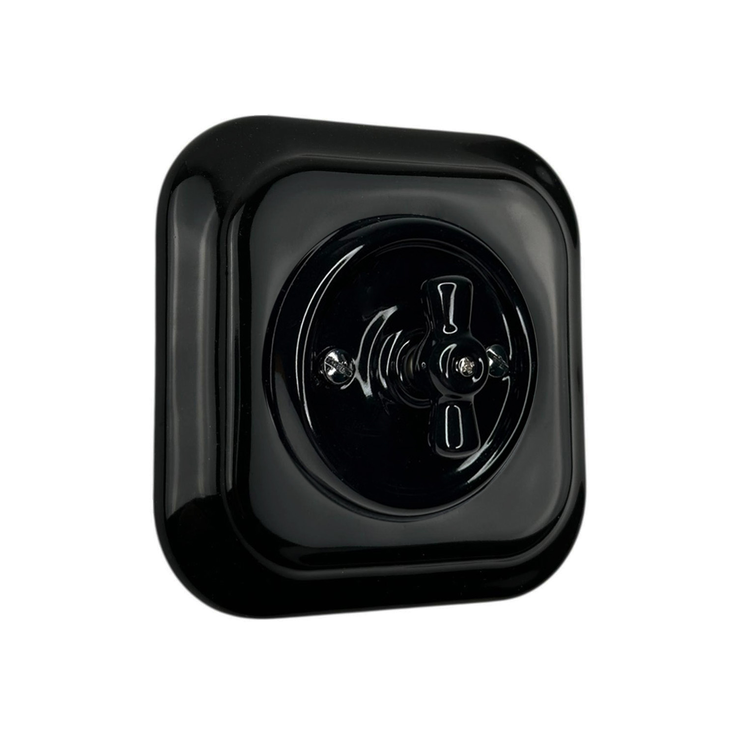Ретро вимикач керамічний Keruida чорний поворотний 1-клавішний прихованого монтажу з квадратною рамкою
