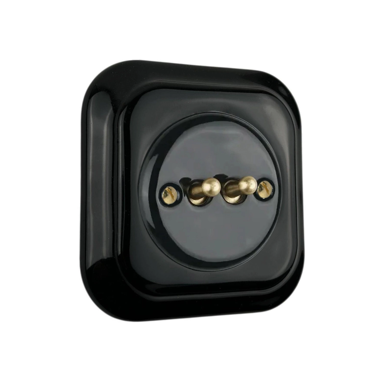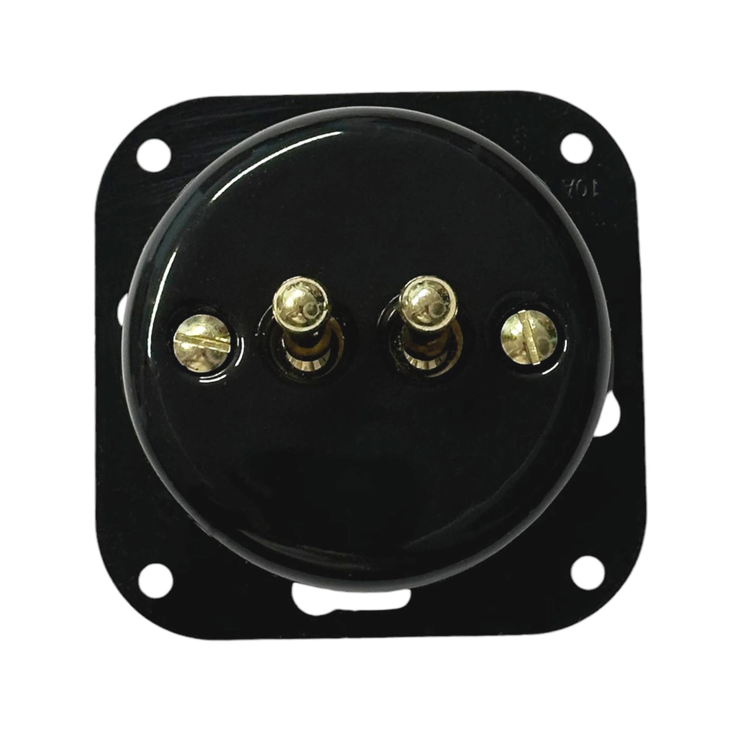 Ретро вимикач керамічний тумблерний чорний, 2-клавішний, прихованого монтажу з квадратною рамкою