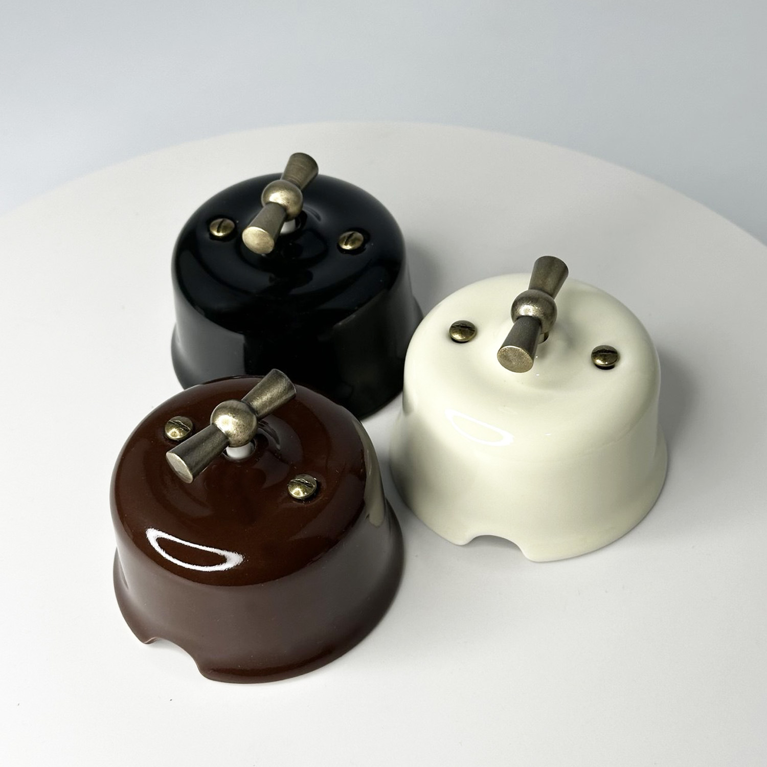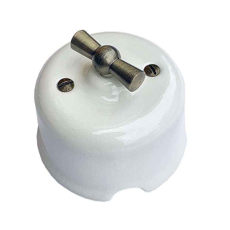 Керамічний ретро вимикач SOFTY Milk — це стильне поєднання елегантного дизайну, натуральних матеріалів та надійної електрофурнітури. Модель виконана у молочному відтінку та доповнена декоративною бронзовою ручкою перемикача, що надає виробу вишуканості та робить його виразним елементом інтер’єру.