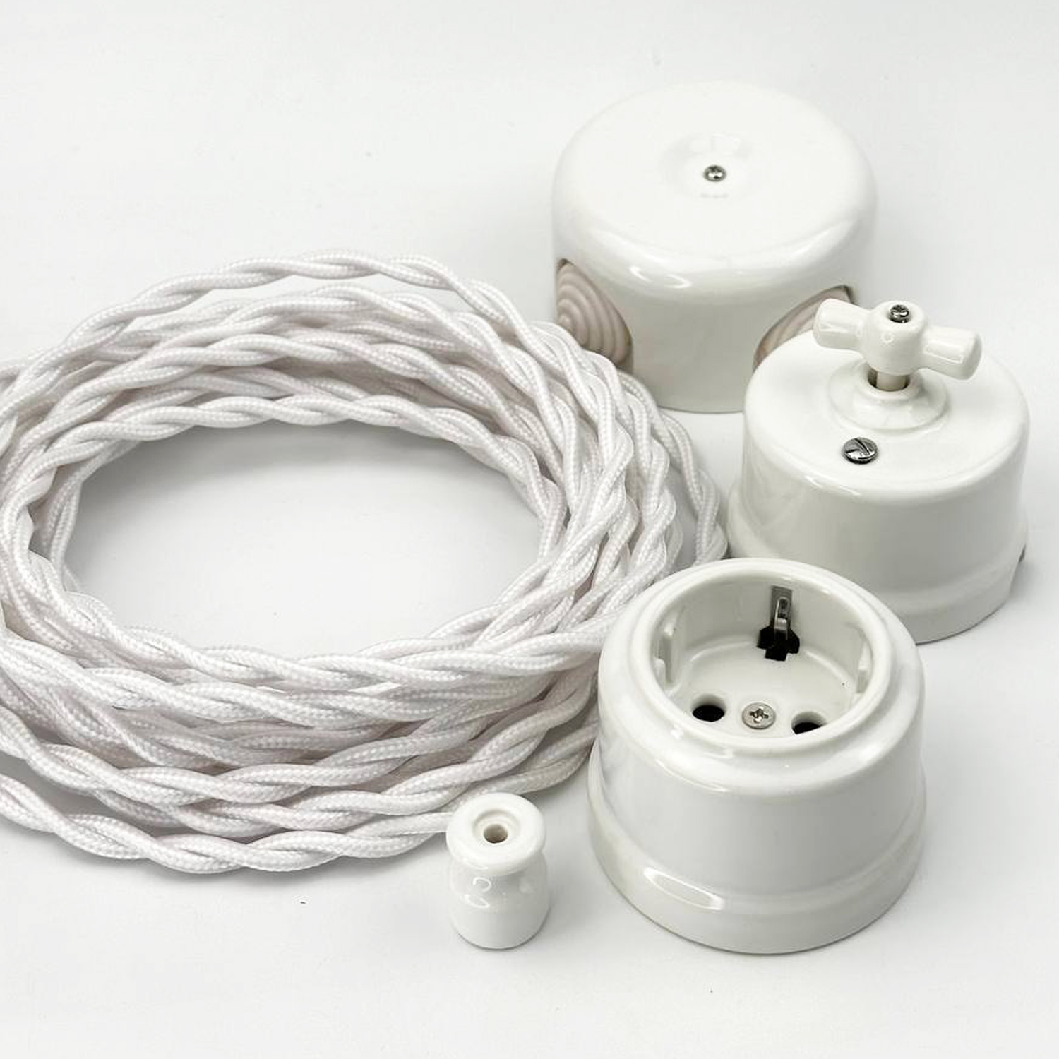 Модель виконана у класичному білому кольорі, що додає інтер’єру виразності та ідеально поєднується з ретро-елементами: вимикачами, розетками та ізоляторами.